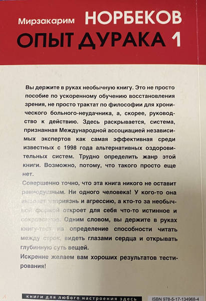 ОписаниеВы держите в руках необычную книгу. Это не просто пособие по ускоренному обучению восстановления зрения, не просто трактат по философии для хронического больного-неудачника, а, скорее, руководство к действию. Здесь раскрывается, система, признанная Международной ассоциацией независимых экспертов как самая эффективная среди известных с 1998 года альтернативных оздоровительных систем. Трудно определить жанр этой книги. Возможно, потому, что такого просто еще нет.Совершенно точно, что эта книга никого не оставит равнодушным. Ни одного человека! У кого-то она вызовет неприязнь и агрессию, а кто-то за необычной формой откроет для себя что-то истинное и сокровенное. Одним словом, вы держите в руках книгу-тест на определение способности читать между строк, видеть глазами сердца и открывать глубинную суть вещей.Искренне желаем вам хороших результатов тестирования!Книга-бестселлер от Мирзакарима Норбекова! Уникальная методика по улучшению зрения, написанная в юмористичной, а главное - действующей на подсознание манере. Реальные и практичные советы, приправленные тонкой иронией и опытом самопознания и самосовершенствования от автора. Миллионы людей уже испробовали методику на себе - и положительные результаты не заставили себя ждать!
