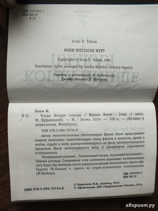 ---Ирвин Ялом: Когда Ницше плакалЭЗОТЕРИКА. ПАРАПСИХОЛОГИЯ. ТАЙНЫ.БИОГРАФИИ и МЕМУАРЫИСТОРИЯ и ПОЛИТИКАФЭНТЕЗИ и ФАНТАСТИКАМЕДИЦИНА и ПСИХОЛОГИЯ ЭКОНОМИКА. БИЗНЕС. МАРКЕТИНГПУТЕШЕСТВИЕ и ДОСУГКНИГИ НА ДРУГИХ ЯЗЫКАХКНИГИ ДЛЯ ДЕТЕЙУЧЕБНАЯ, МЕТОДИЧЕСКАЯ ЛИТЕРАТУРА и СЛОВАРИТЕХНИКА и НАУКАХУДОЖЕСТВЕННАЯ ЛИТЕРАТУРАРЕЛИГИЯ и ФИЛОСОФИЯПЕРИОДИЧЕСКИЕ ИЗДАНИЯМЕДИЦИНА и ПСИХОЛОГИЯНАШ ИЗРАИЛЬ