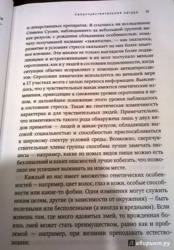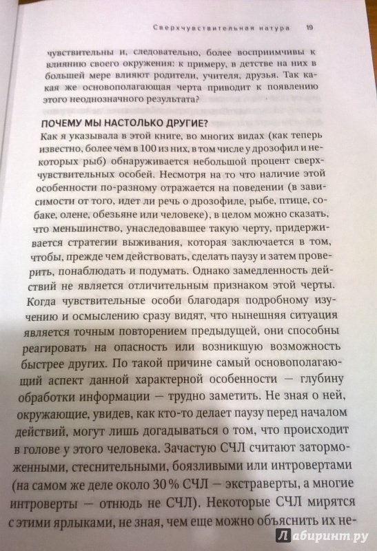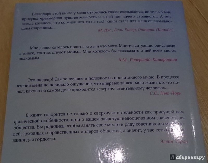 ОписаниеЕсли вы остро реагируете на происходящее вокруг, то, возможно, относитесь к редкой группе "сверхчувствительных людей" (СЧЛ). Как это влияет на ваши взаимоотношения с близкими и карьеру? Какие трудности вероятны при устройстве на работу и как с ними справиться?На что стоит обратить внимание родителям детей с повышенной эмоциональностью? И вообще что такое "сверхчувствительность" - особый дар или болезнь? Элейн Эйрон, ведущий американский психолог и психотерапевт, искала ответы на эти вопросы много лет, результаты проведенных ею исследований и наблюдений - на страницах этой книги. Автор рассказывает об удивительных способностях и чертах характера, свойственных СЧЛ, а также способах решения типичных для них проблем, о которых Элейн знает не понаслышке - ведь она тоже "сверхчувствительная натура". В книгу включен ряд упражнений, способствующих адаптации СЧЛ в современном мире и созданию своего рода защиты от негативных эмоциональных воздействий.Если вы остро реагируете на происходящее вокруг, то, возможно, относитесь к редкой группе "сверхчувствительных людей" (СЧЛ). Как это влияет на ваши взаимоотношения с близкими и карьеру? Какие трудности вероятны при устройстве на работу и как с ними справиться?На что стоит обратить внимание родителям детей с повышенной эмоциональностью? И вообще что такое "сверхчувствительность" - особый дар или болезнь? Элейн Эйрон, ведущий американский психолог и психотерапевт, искала ответы на эти вопросы много лет, результаты проведенных ею исследований и наблюдений - на страницах этой книги. Автор рассказывает об удивительных способностях и чертах характера, свойственных СЧЛ, а также способах решения типичных для них проблем, о которых Элейн знает не понаслышке - ведь она тоже "сверхчувствительная натура". В книгу включен ряд упражнений, способствующих адаптации СЧЛ в современном мире и созданию своего рода защиты от негативных эмоциональных воздействий.