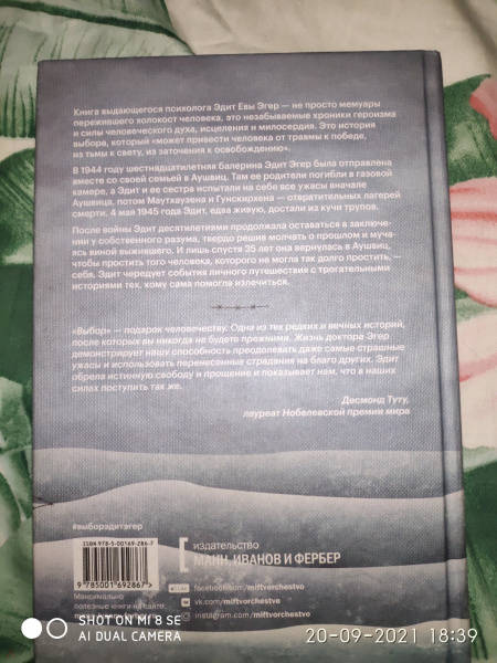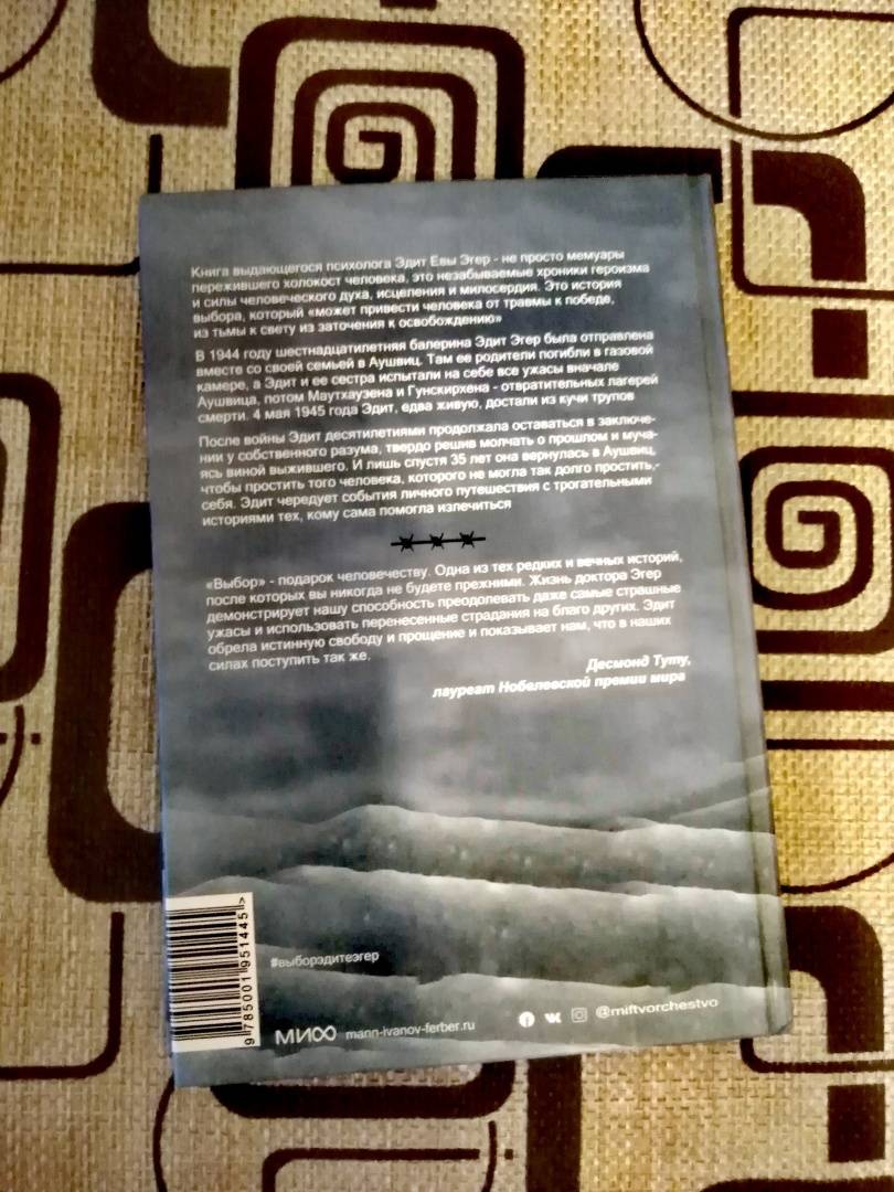 ОписаниеОдна из самых сильных книг о войне и внутренней силе человека.В 1944 году шестнадцатилетняя балерина Эдит Эгер была отправлена вместе со своей семьей в Аушвиц. Спустя всего несколько часов после гибели ее родителей нацистский доктор Йозеф Менгеле заставил Эдит танцевать ради собственной забавы и ее выживания. Эдит и ее сестра пережили все ужасы Аушвица, Маутхаузена и Гунскирхена - лагерей смерти. 4 мая 1945 года Эдит, едва живую, достали из кучи трупов.Пытки, голод и постоянная угроза смерти не сломили Эдит, а ее внутренний мир помог обрести жизнеутверждающую силу и душевную свободу. Через 35 лет после окончания войны, став известным психологом, Эдит вернулась в Аушвиц, чтобы избавиться от воспоминаний о прошлом и вины выжившего. Эдит чередует события своего личного путешествия с трогательными историями тех, кому сама помогла излечиться.Эта книга - незабываемая история выживания и исцеления, история освобождения и силы человеческого духа. Она показывает, что мы всегда можем выбирать, чему нас учит жизнь и как относиться к происходящему. Это книга, которая изменит жизнь и подарит поколениям читателей поддержку.Фишки книги- Написана женщиной, которая во время войны прошла лагеря смерти, а позже стала выдающимся психологом.- Способна изменить отношение к жизни и показать, что мы сами можем выбирать то, чему нас научит наш опыт.- Бестселлер Sunday Times, New York Times, Amazon.- Лауреат премий 2017 National Jewish Book и 2018 Christopher Award.- Книга 2019 года по мнению редакции МИФа.- Рекомендуют к прочтению Билл Гейтс и Опра Уинфри.Для кого эта книгаДля тех, кому интересны книги о внутренней силе человека.Для тех, кто хочет узнать о роли искусства в преодолении ужасов войны и обретении душевной свободы.Для всех, кто интересуется психологией человеческих отношений.5-е издание, переработанное и исправленное.СвернутьОдна из самых сильных книг о войне и внутренней силе человека.В 1944 году шестнадцатилетняя балерина Эдит Эгер была отправлена вместе со своей семьей в Аушвиц. Спустя всего несколько часов после гибели ее родителей нацистский доктор Йозеф Менгеле заставил Эдит танцевать ради собственной забавы и ее выживания. Эдит и ее сестра пережили все ужасы Аушвица, Маутхаузена и Гунскирхена - лагерей смерти. 4 мая 1945 года Эдит, едва живую, достали из кучи трупов.Пытки, голод и постоянная угроза смерти не сломили Эдит, а ее внутренний мир помог обрести жизнеутверждающую силу и душевную свободу. Через 35 лет после окончания войны, став известным психологом, Эдит вернулась в Аушвиц, чтобы избавиться от воспоминаний о прошлом и вины выжившего. Эдит чередует события своего личного путешествия с трогательными историями тех, кому сама помогла излечиться.Эта книга - незабываемая история выживания и исцеления, история освобождения и силы человеческого духа. Она показывает, что мы всегда можем выбирать, чему нас учит жизнь и как относиться к происходящему. Это книга, которая изменит жизнь и подарит поколениям читателей поддержку.Фишки книги- Написана женщиной, которая во время войны прошла лагеря смерти, а позже стала выдающимся психологом.- Способна изменить отношение к жизни и показать, что мы сами можем выбирать то, чему нас научит наш опыт.- Бестселлер Sunday Times, New York Times, Amazon.- Лауреат премий 2017 National Jewish Book и 2018 Christopher Award.- Книга 2019 года по мнению редакции МИФа.- Рекомендуют к прочт