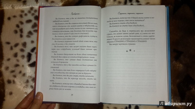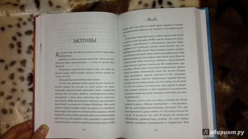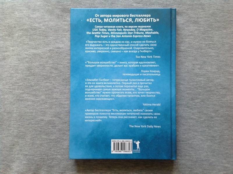 ОписаниеДолгожданная новинка Элизабет Гилберт! Книга для тех, кто хочет сделать свою жизнь насыщенной, грандиозной, счастливой, разнообразной и интересной.Элизабет Гилберт - популярная американская писательница, автор всемирно известной книги "Есть, молиться, любить", продержавшейся 199 недель в списке бестселлеров The New York Times."Большое волшебство" - исследование на тему творчества: какова его природа, какую роль оно играет в нашей повседневной жизни, откуда берутся идеи, как преодолеть страх и начать творить.По мнению автора, внутри каждого из нас таятся необычные сокровища, которыми нас наградила природа. И наша задача - вытащить их на свет. А что для этого нужно сделать, объяснит эта практичная книга, полная ярких примеров и удивительных открытий.Вдохновляйтесь и не бойтесь творить!Долгожданная новинка Элизабет Гилберт! Книга для тех, кто хочет сделать свою жизнь насыщенной, грандиозной, счастливой, разнообразной и интересной.Элизабет Гилберт - популярная американская писательница, автор всемирно известной книги "Есть, молиться, любить", продержавшейся 199 недель в списке бестселлеров The New York Times."Большое волшебство" - исследование на тему творчества: какова его природа, какую роль оно играет в нашей повседневной жизни, откуда берутся идеи, как преодолеть страх и начать творить.По мнению автора, внутри каждого из нас таятся необычные сокровища, которыми нас наградила природа. И наша задача - вытащить их на свет. А что для этого нужно сделать, объяснит эта практичная книга, полная ярких примеров и удивительных открытий.Вдохновляйтесь и не бойтесь творить!