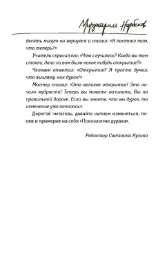 ОписаниеДураки окружают нас повсюду, и мы привыкли не относиться к ним всерьез. А может быть зря? Дурак не так прост, как кажется на первый взгляд. Это доказывают притчи, сказки и жизненный опыт. И действительно, почему шуту гороховому так часто везет? Почему он часто оказывается всеобщим любимчиком? Почему его действия получаются самыми правильными?Секрет - в очень простой психологии дурака. Он умеет жить легко и счастливо. Поэтому ему удается все: найти интересную и денежную работу, быстро сделать карьеру, удачно жениться и прожить здоровым до 100 лет. Его лозунги жизни: "Чтобы что-то получить, надо действовать", "Слушать интуицию", "Почаще улыбаться", "Изменить характер, чтобы избавиться от болезней". И самое главное: он всегда думает сам, и никогда не идет на поводу чужих мнений. И, в конце концов, получается, что дурак живет лучше, чем умный.А, может, он вовсе не глупец? Есть суфийская мудрость, которая гласит: часто истинный мудрец может удачно маскироваться под маской именно дурака. Если это так, значит, к советам, мыслям, объяснениям шута горохового надо чутко прислушиваться. И, возможно, "дурацкое" отношение к жизни даст многим из вас шанс стать успешным и благодушным везунчиком.СвернутьДураки окружают нас повсюду, и мы привыкли не относиться к ним всерьез. А может быть зря? Дурак не так прост, как кажется на первый взгляд. Это доказывают притчи, сказки и жизненный опыт. И действительно, почему шуту гороховому так часто везет? Почему он часто оказывается всеобщим любимчиком? Почему его действия получаются самыми правильными?Секрет - в очень простой психологии дурака. Он умеет жить легко и счастливо. Поэтому ему удается все: найти интересную и денежную работу, быстро сделать карьеру, удачно жениться и прожить здоровым до 100 лет. Его лозунги жизни: "Чтобы что-то получить, надо действовать", "Слушать интуицию", "Почаще улыбаться", "Изменить характер, чтобы избавиться от болезней". И самое главное: он всегда думает сам, и никогда не идет на поводу чужих мнений. И, в конце концов, получается, что дурак живет лучше, чем умный.А, может, он вовсе не глупец? Есть суфийская мудрость, которая гласит: часто истинный мудрец может удачно маскироваться под маской именно дурака. Если это так, значит, к советам, мыслям, объяснениям шута горохового надо чутко прислушиваться. И, возможно, "дурацкое" отношение к жизни даст многим из вас шанс стать успешным и благодушным везунчиком.СвернутьСвернуть