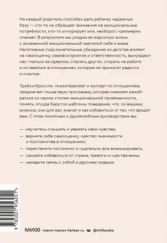ОписаниеПрактическое руководство, которое шаг за шагом поможет разобрать проблемы, связанные с эмоциональной привязанностью, и построить крепкие, надежные и счастливые отношения.Трейси Кроссли, психотерапевт и эксперт по отношениям, дает практические инструменты, как разобраться со своим стилем привязанности и решить проблемы, связанные с ненадежным типом (тревожным, избегающим и тревожно-избегающим) — с самооценкой, самовосприятием и собственной ответственностью. Вы разрушите сформировавшиеся ранее негативные подсознательные убеждения и сумеете создать эмоциональную связь с собой и другими людьми.Практическое руководство, которое шаг за шагом поможет разобрать проблемы, связанные с эмоциональной привязанностью, и построить крепкие, надежные и счастливые отношения.Трейси Кроссли, психотерапевт и эксперт по отношениям, дает практические инструменты, как разобраться со своим стилем привязанности и решить проблемы, связанные с ненадежным типом (тревожным, избегающим и тревожно-избегающим) — с самооценкой, самовосприятием и собственной ответственностью. Вы разрушите сформировавшиеся ранее негативные подсознательные убеждения и сумеете создать эмоциональную связь с собой и другими людьми.