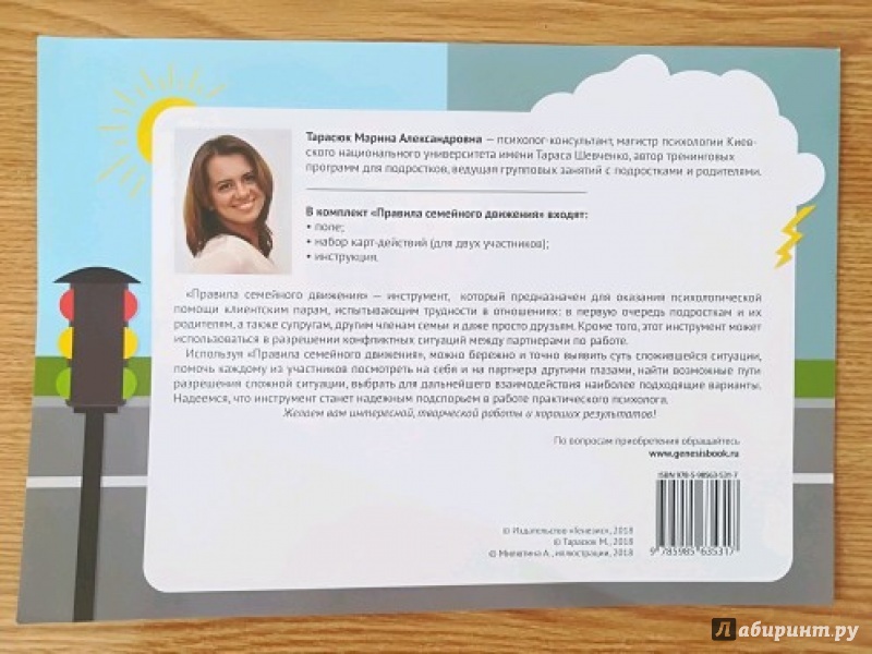 Описание"Правила семейного движения" - инструмент, который предназначен для оказания психологической помощи клиентским парам, испытывающим трудности в отношениях: в первую очередь подросткам и их родителям, а также супругам, другим членам семьи и даже просто друзьям. Кроме того, этот инструмент может использоваться в разрешении конфликтных ситуаций между партнерами по работе.Используя "Правила семейного движения", можно бережно и точно выявить суть сложившейся ситуации, помочь каждому из участников посмотреть на себя и на партнера другими глазами, найти возможные пути разрешения сложной ситуации, выбрать для дальнейшего взаимодействия наиболее подходящие варианты. Надеемся, что инструмент станет надежным подспорьем в работе практического психолога."Правила семейного движения" - инструмент, который предназначен для оказания психологической помощи клиентским парам, испытывающим трудности в отношениях: в первую очередь подросткам и их родителям, а также супругам, другим членам семьи и даже просто друзьям. Кроме того, этот инструмент может использоваться в разрешении конфликтных ситуаций между партнерами по работе.Используя "Правила семейного движения", можно бережно и точно выявить суть сложившейся ситуации, помочь каждому из участников посмотреть на себя и на партнера другими глазами, найти возможные пути разрешения сложной ситуации, выбрать для дальнейшего взаимодействия наиболее подходящие варианты. Надеемся, что инструмент станет надежным подспорьем в работе практического психолога.