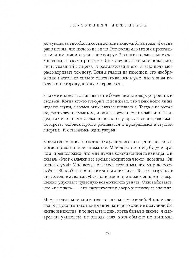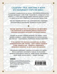 ОписаниеЧеловек - самый сложный механизм на планете, а йога - инструкция по его применению. Так считает Садхгуру - йог, мистик и коуч ведущих компаний мира. Эта увлекательная книга основана на разработанной им системе "Внутренняя инженерия", призванной убрать с йоги культурные наслоения и представить ее как технологию достижения радости и благополучия, доступную любому человеку. Руководствуясь этой древней мудростью, поданной в современном ключе, каждый может сделать свою жизнь именно такой, какой хочет. Садхгуру успешно выступал с лекциями о "Внутренней инженерии" в самых авторитетных учреждениях и университетах по всему миру, включая ООН, Google, General Electic, Сбербанк, а также Оксфорд, Стэнфорд, Гарвард, Йельский университет, Уортонскую школу бизнеса, Массачусетский технологический институт и так далее. Садхгуру также является основателем некоммерческой благотворительной организации Isha, насчитывающей более 7 миллионов волонтеров по всему миру. Фонду присвоен специальный консультативный статус при Экономическом и Социальном Совете ООН.СвернутьЧеловек - самый сложный механизм на планете, а йога - инструкция по его применению. Так считает Садхгуру - йог, мистик и коуч ведущих компаний мира. Эта увлекательная книга основана на разработанной им системе "Внутренняя инженерия", призванной убрать с йоги культурные наслоения и представить ее как технологию достижения радости и благополучия, доступную любому человеку. Руководствуясь этой древней мудростью, поданной в современном ключе, каждый может сделать свою жизнь именно такой, какой хочет. Садхгуру успешно выступал с лекциями о "Внутренней инженерии" в самых авторитетных учреждениях и университетах по всему миру, включая ООН, Google, General Electic, Сбербанк, а также Оксфорд, Стэнфорд, Гарвард, Йельский университет, Уортонскую школу бизнеса, Массачусетский технологический институт и так далее. Садхгуру также является основателем некоммерческой благотворительной организации Isha, насчитывающей более 7 миллионов волонтеров по всему миру. Фонду присвоен специальный консультативный статус при Экономическом и Социальном Совете ООН.СвернутьСвернуть