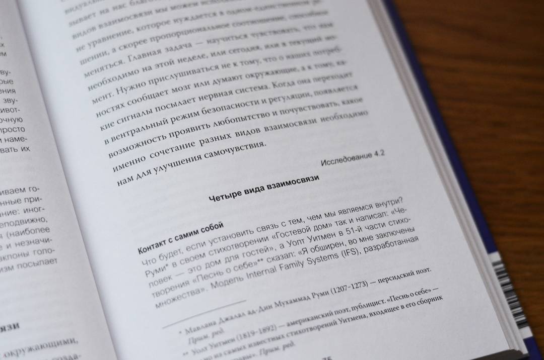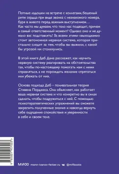 ОписаниеРуководство от клинического психолога и основательницы Polyvagal Institute, которое поможет прийти к спокойствию, безопасности через изучение нервной системы своего тела.Напряженный разговор, ссора с партнером или неприятный твит - все это вполне обычные ситуации, но часто мы реагируем так, будто нам грозит ужасная опасность. Дело в том, что наша нервная система воспринимает угрозы одинаково — независимо от того, с чем мы реально имеем дело. Неоправданно острая реакция нашей нервной системы часто становится серьезной проблемой, однако есть очень эффективный подход, благодаря которому мы все можем научиться воспринимать мир как легкий и безопасный. Это поливагальная теория.Эксперт и клинический консультант Деб Дана доступно объясняет основные положения поливагальной теории, а затем рассказывает, как претворить науку в жизнь: приводит практические инструменты, которые помогут изменить ваши отношения со своим телом и которые очень легко внедрить в повседневную жизнь. Дана поможет вам овладеть навыками, позволяющими лучше осознавать свою нервную систему — и изменять то, как вы реагируете на серьезные и не очень жизненные вызовы.СвернутьРуководство от клинического психолога и основательницы Polyvagal Institute, которое поможет прийти к спокойствию, безопасности через изучение нервной системы своего тела.Напряженный разговор, ссора с партнером или неприятный твит - все это вполне обычные ситуации, но часто мы реагируем так, будто нам грозит ужасная опасность. Дело в том, что наша нервная система воспринимает угрозы одинаково — независимо от того, с чем мы реально имеем дело. Неоправданно острая реакция нашей нервной системы часто становится серьезной проблемой, однако есть очень эффективный подход, благодаря которому мы все можем научиться воспринимать мир как легкий и безопасный. Это поливагальная теория.Эксперт и клинический консультант Деб Дана доступно объясняет основные положения поливагальной теории, а затем рассказывает, как претворить науку в жизнь: приводит практические инструменты, которые помогут изменить ваши отношения со своим телом и которые очень легко внедрить в повседневную жизнь. Дана поможет вам овладеть навыками, позволяющими лучше осознавать свою нервную систему — и изменять то, как вы реагируете на серьезные и не очень жизненные вызовы.СвернутьСвернуть