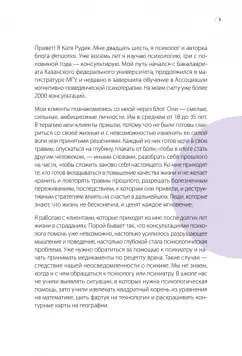 ОписаниеКульт успеха, высокие требования к себе, огромный выбор возможностей - все это вызывает тревожность у молодых взрослых. Как жить с этим и быть счастливым, находясь в гармонии с собой? Как отринуть навязанные роли и приблизиться к себе настоящему?Екатерина Рудик - практикующий психолог, магистр психологии МГУ, автор блога @maonos - написала эту книгу, чтобы рассказать о работе психики и установках, мешающих нам двигаться вперед, предупредить о сложностях, которые ждут нас в первые годы взрослой жизни, и ответить на самые волнующие вопросы.Что мешает нам справиться с тревожностью и прийти к гармонии? Зачем нужны неприятные эмоции?Как выйти из роли жертвы или спасателя?Когда действительно нужно идти к психологу?Каждая глава дополнена тестами и заданиями, которые помогут понять себя, выявить свои сильные стороны, дающие ресурс и опору, и зоны риска, которые требуют внимания и проработки.Культ успеха, высокие требования к себе, огромный выбор возможностей - все это вызывает тревожность у молодых взрослых. Как жить с этим и быть счастливым, находясь в гармонии с собой? Как отринуть навязанные роли и приблизиться к себе настоящему?Екатерина Рудик - практикующий психолог, магистр психологии МГУ, автор блога @maonos - написала эту книгу, чтобы рассказать о работе психики и установках, мешающих нам двигаться вперед, предупредить о сложностях, которые ждут нас в первые годы взрослой жизни, и ответить на самые волнующие вопросы.Что мешает нам справиться с тревожностью и прийти к гармонии? Зачем нужны неприятные эмоции?Как выйти из роли жертвы или спасателя?Когда действительно нужно идти к психологу?Каждая глава дополнена тестами и заданиями, которые помогут понять себя, выявить свои сильные стороны, дающие ресурс и опору, и зоны риска, которые требуют внимания и проработки.