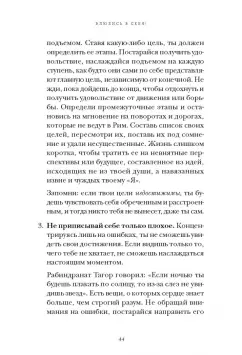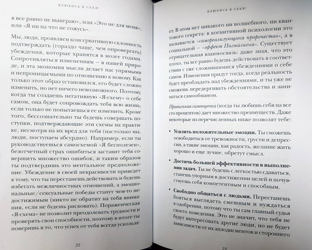 ОписаниеМы находим время для детей, партнера, родителей, свекра и тещи, соседей, друзей, но мысль использовать свободную минуту для нас самих не приходит нам в голову. Собственное "Я" занимает последнее место в списке тех, кому мы готовы выразить свои чувства. Мы живем, постоянно откладывая вознаграждения, которых заслуживаем, и говорим: "Когда-нибудь я это сделаю", но этот день так и не приходит. Основываясь на многолетнем практическом опыте, Вальтер Рисо выделяет 4 компонента самоуважения и ведет читателя по пути обретения правильной самооценки. "Здоровое и правильно сформированное самолюбие исходит из следующего фундаментального принципа: "Я заслуживаю все то, что позволяет мне расти как личности и быть счастливым". З-а-с-л-у-ж-и-в-а-ю: именно так, наслаждаясь каждой буквой".Эта книга посвящена тем, кто недостаточно любит себя, живет, как в капсуле, прикованный к правилам, лишенным здравого смысла, не считаясь с самим собой. А еще тем, кто сумел полюбить себя, но из-за бешеного темпа жизни, когда многое отходит на второй план, потом забыл, как это делается. Рецепт этой книги одновременно простой и сложный: "Полюби себя; будь смелым; начни роман с самим собой, и с каждым днем будешь все счастливее, становясь более выносливым к ударам жизни."Любовь к себе - это начало романа, который длится всю жизнь" Оскар УайльдСвернутьМы находим время для детей, партнера, родителей, свекра и тещи, соседей, друзей, но мысль использовать свободную минуту для нас самих не приходит нам в голову. Собственное "Я" занимает последнее место в списке тех, кому мы готовы выразить свои чувства. Мы живем, постоянно откладывая вознаграждения, которых заслуживаем, и говорим: "Когда-нибудь я это сделаю", но этот день так и не приходит. Основываясь на многолетнем практическом опыте, Вальтер Рисо выделяет 4 компонента самоуважения и ведет читателя по пути обретения правильной самооценки. "Здоровое и правильно сформированное самолюбие исходит из следующего фундаментального принципа: "Я заслуживаю все то, что позволяет мне расти как личности и быть счастливым". З-а-с-л-у-ж-и-в-а-ю: именно так, наслаждаясь каждой буквой".Эта книга посвящена тем, кто недостаточно любит себя, живет, как в капсуле, прикованный к правилам, лишенным здравого смысла, не считаясь с самим собой. А еще тем, кто сумел полюбить себя, но из-за бешеного темпа жизни, когда многое отходит на второй план, потом забыл, как это делается. Рецепт этой книги одновременно простой и сложный: "Полюби себя; будь смелым; начни роман с самим собой, и с каждым днем будешь все счастливее, становясь более выносливым к ударам жизни."Любовь к себе - это начало романа, который длится всю жизнь" Оскар УайльдСвернутьСвернуть