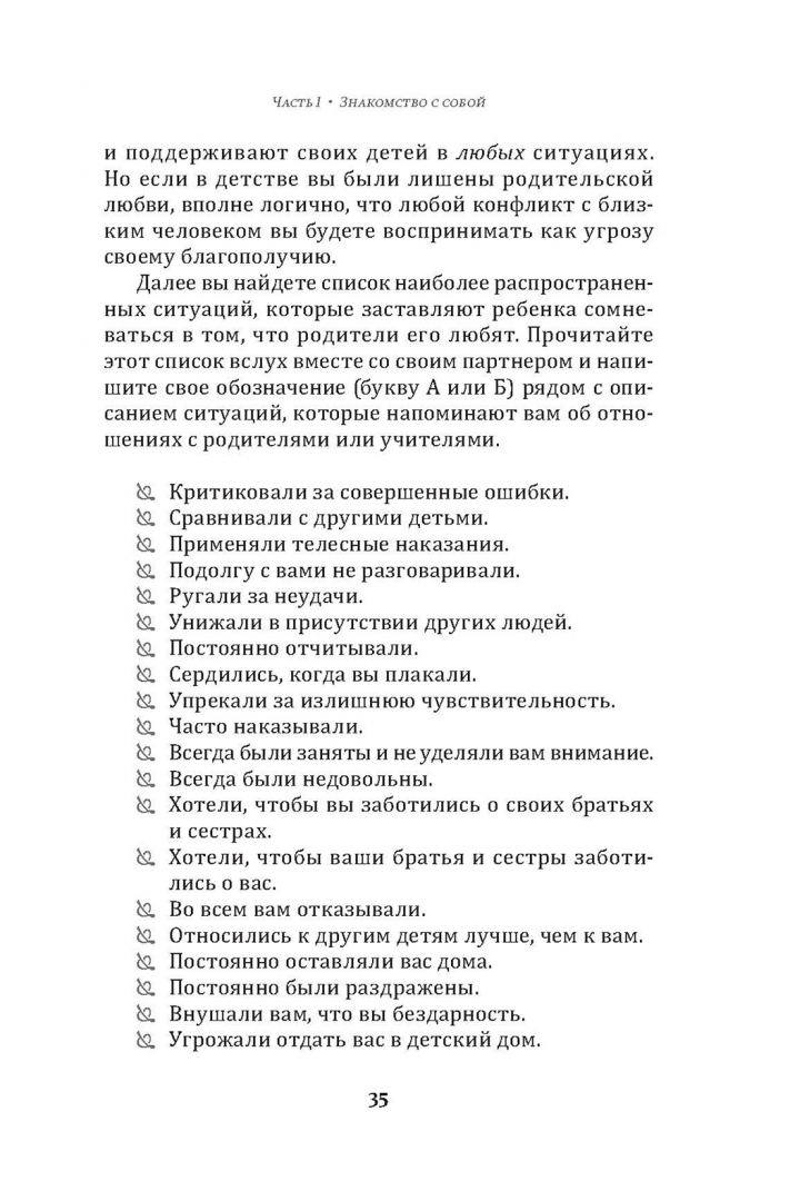 ОписаниеРабочая тетрадь по созданию лучших отношений для пар. Управляйте конфликтами, укрепляйте доверие и эмоциональную близостьБлизкие романтические отношения могут служить социальной основой нашей жизни, давать нам чувство безопасности и поддержку партнера. Однако даже в самых прочных союзах порой возникают конфликты и недопонимания, приводящие к напряжению и разладу в общении.Бетси Чанг, клинический психолог, специализирующийся на психотерапии для пар, предлагает инструменты и техники, которые помогают партнерам лучше понимать друг друга, выстраивать эффективную коммуникацию и справляться с конфликтами. Через терапию пары учатся не только разрешать текущие проблемы, но и укреплять свою связь, повышая уровень взаимопонимания.Рабочая тетрадь состоит из трех разделов. В первой части вам предстоит познакомиться со своим внутренним миром и потребностями, осознать, какие скрытые установки и модели поведения сейчас влияют на вашу жизнь. Во второй части Бетси описывает структуру здоровых осознанных отношений и техники, повышающие эмоциональный интеллект и создающие глубокую эмоциональную связь с партнером. Наконец, в третьей части вы узнаете о том, как применить изученные техники для разрешения конфликтов и преодоления проблемных ситуаций совместно с партнером.СвернутьРабочая тетрадь по созданию лучших отношений для пар. Управляйте конфликтами, укрепляйте доверие и эмоциональную близостьБлизкие романтические отношения могут служить социальной основой нашей жизни, давать нам чувство безопасности и поддержку партнера. Однако даже в самых прочных союзах порой возникают конфликты и недопонимания, приводящие к напряжению и разладу в общении.Бетси Чанг, клинический психолог, специализирующийся на психотерапии для пар, предлагает инструменты и техники, которые помогают партнерам лучше понимать друг друга, выстраивать эффективную коммуникацию и справляться с конфликтами. Через терапию пары учатся не только разрешать текущие проблемы, но и укреплять свою связь, повышая уровень взаимопонимания.Рабочая тетрадь состоит из трех разделов. В первой части вам предстоит познакомиться со своим внутренним миром и потребностями, осознать, какие скрытые установки и модели поведения сейчас влияют на вашу жизнь. Во второй части Бетси описывает структуру здоровых осознанных отношений и техники, повышающие эмоциональный интеллект и создающие глубокую эмоциональную связь с партнером. Наконец, в третьей части вы узнаете о том, как применить изученные техники для разрешения конфликтов и преодоления проблемных ситуаций совместно с партнером.СвернутьСвернуть