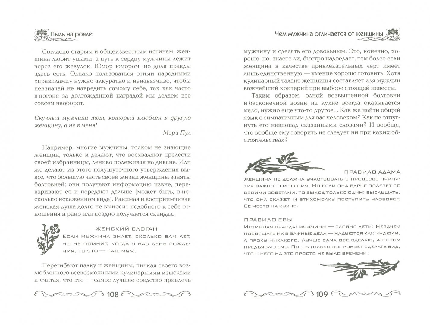 ОписаниеОх уж эти женщины!.. Ох уж эти мужчины!.. Кого-то раздражает пыль на рояле, а кто-то чувствует себя уютно, разбросав по квартире все свои дырявые носки. Мы такие непохожие, но всё же... мы не можем жить друг без друга! Эта книга, написанная с прекрасным чувством юмора и глубоким знанием истинной сути человеческой природы, анализирует сложный мир отношений, где постоянно сталкивается мужское и женское. Как и почему мы поступаем в разных жизненных ситуациях, каковы наши истинные мотивы, что на самом деле руководит поступками мужчин и женщин... и кто, в конце концов, протрёт эту чёртову пыль?!Ох уж эти женщины!.. Ох уж эти мужчины!.. Кого-то раздражает пыль на рояле, а кто-то чувствует себя уютно, разбросав по квартире все свои дырявые носки. Мы такие непохожие, но всё же... мы не можем жить друг без друга! Эта книга, написанная с прекрасным чувством юмора и глубоким знанием истинной сути человеческой природы, анализирует сложный мир отношений, где постоянно сталкивается мужское и женское. Как и почему мы поступаем в разных жизненных ситуациях, каковы наши истинные мотивы, что на самом деле руководит поступками мужчин и женщин... и кто, в конце концов, протрёт эту чёртову пыль?!