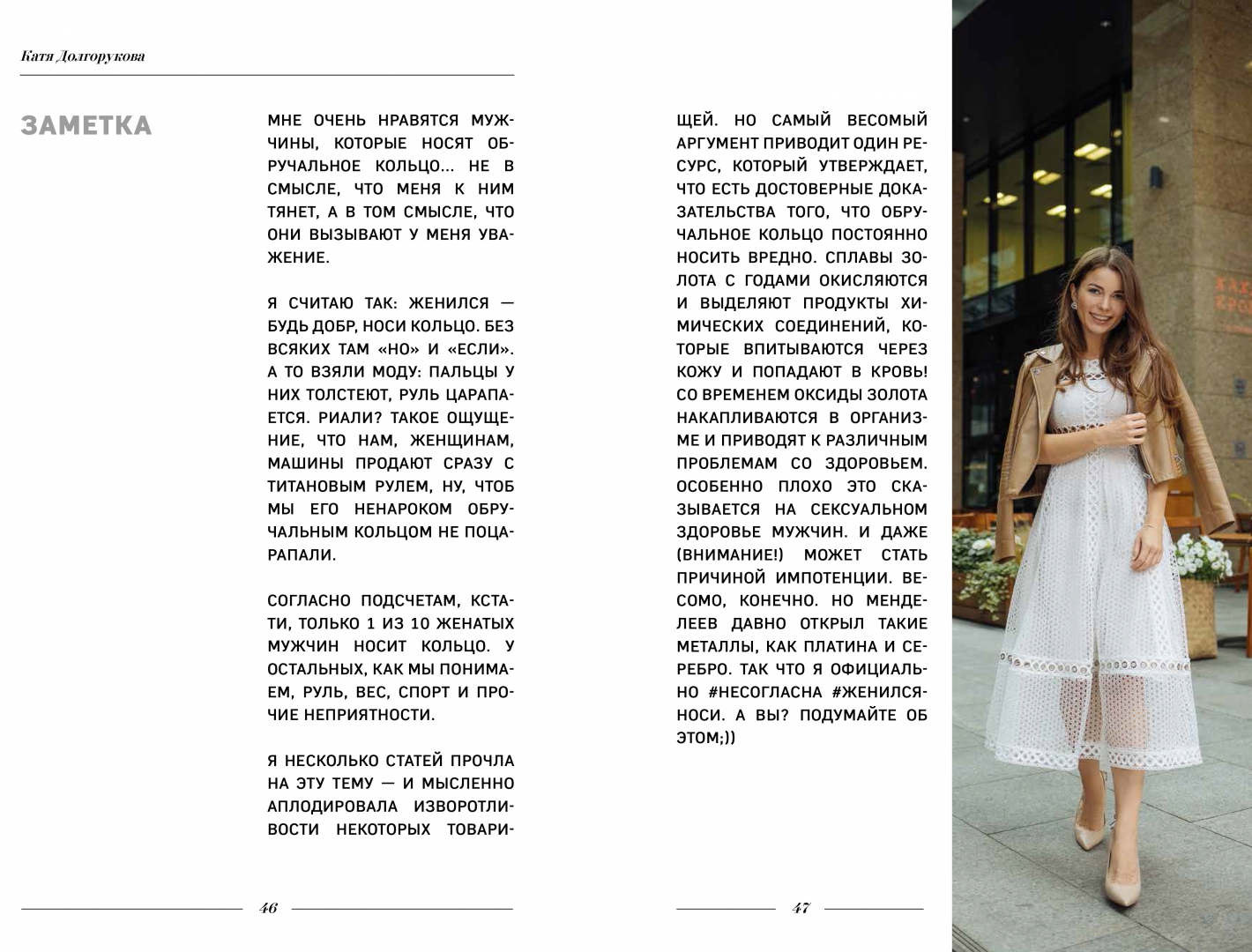 ОписаниеКто из нас после первого свидания мысленно не выходил замуж за мужчину? Не представлял себя в подвенечном платье? Не примерял его фамилию и не придумывал новую подпись в паспорте? Кто из нас не размышлял, какие у вас будут дети, путешествия, дом и старость? Конечно, это все безобидные фантазии,но мало кто умеет обуздать их, когда мужчина вас заинтересовал, расположил к себе, не дай Бог, начал красиво ухаживать, а потом пропал. Нет его, и все тут. И ощущение, что бросили. Больно, обидно, неприятно, но по факту — никто нас не бросал. С нами просто не захотели продолжения. О таких и не только о таких свиданиях из своей жизни рассказывает блогер, мама и просто удивительная девушка Катя Долгорукова @dolgorukova.Кто из нас после первого свидания мысленно не выходил замуж за мужчину? Не представлял себя в подвенечном платье? Не примерял его фамилию и не придумывал новую подпись в паспорте? Кто из нас не размышлял, какие у вас будут дети, путешествия, дом и старость? Конечно, это все безобидные фантазии,но мало кто умеет обуздать их, когда мужчина вас заинтересовал, расположил к себе, не дай Бог, начал красиво ухаживать, а потом пропал. Нет его, и все тут. И ощущение, что бросили. Больно, обидно, неприятно, но по факту — никто нас не бросал. С нами просто не захотели продолжения. О таких и не только о таких свиданиях из своей жизни рассказывает блогер, мама и просто удивительная девушка Катя Долгорукова @dolgorukova.