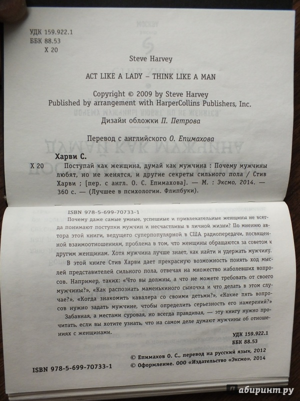 ---Стив Харви: Поступай как женщина, думай как мужчина. Почему мужчины любят, но не женятся, и другие секретыЭЗОТЕРИКА. ПАРАПСИХОЛОГИЯ. ТАЙНЫ.БИОГРАФИИ и МЕМУАРЫИСТОРИЯ и ПОЛИТИКАФЭНТЕЗИ и ФАНТАСТИКАМЕДИЦИНА и ПСИХОЛОГИЯ ЭКОНОМИКА. БИЗНЕС. МАРКЕТИНГПУТЕШЕСТВИЕ и ДОСУГКНИГИ НА ДРУГИХ ЯЗЫКАХКНИГИ ДЛЯ ДЕТЕЙУЧЕБНАЯ, МЕТОДИЧЕСКАЯ ЛИТЕРАТУРА и СЛОВАРИТЕХНИКА и НАУКАХУДОЖЕСТВЕННАЯ ЛИТЕРАТУРАРЕЛИГИЯ и ФИЛОСОФИЯПЕРИОДИЧЕСКИЕ ИЗДАНИЯМЕДИЦИНА и ПСИХОЛОГИЯНАШ ИЗРАИЛЬ