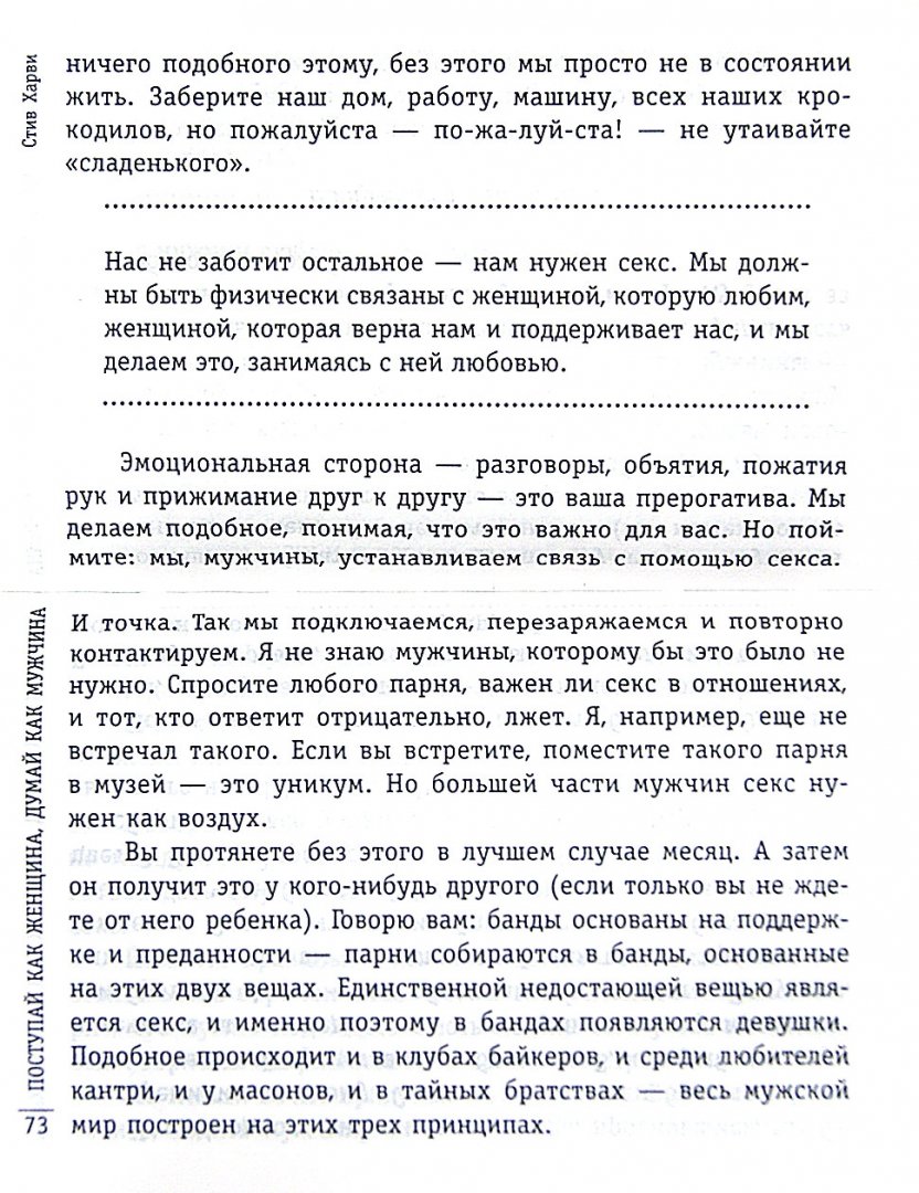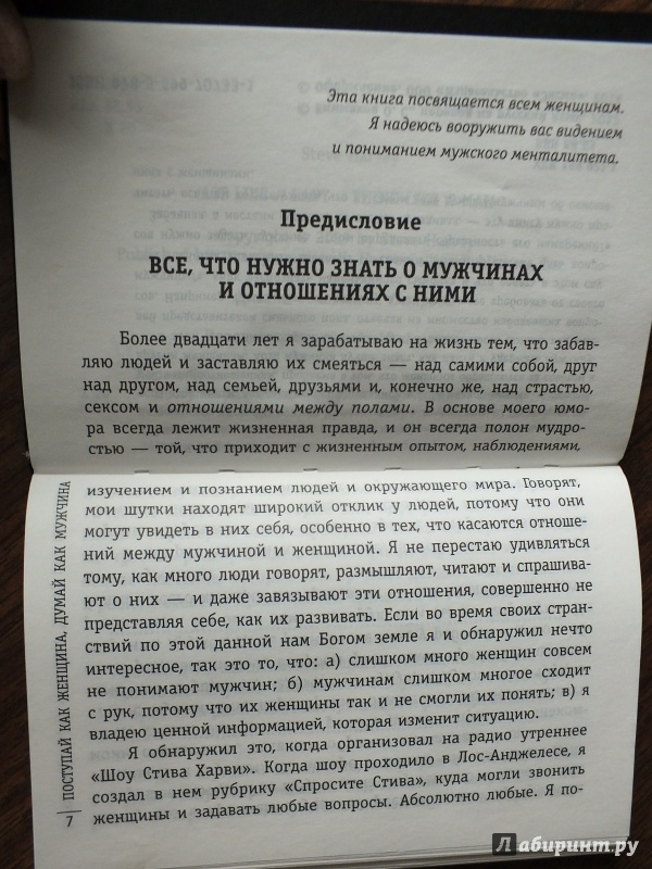 ОписаниеПочему даже самые умные, успешные и привлекательные женщины не всегда понимают поступки мужчин и несчастливы в личной жизни? По мнению автора этой книги, ведущего суперпопулярной в США радиопередачи, посвященной взаимоотношениям, проблема в том, что женщины обращаются за советом к другим женщинам. Хотя мужчина лучше знает, как найти и удержать мужчину. В этой книге Стив Харви дает прекрасную возможность понять ход мыслей представителей сильного пола, отвечая на множество наболевших вопросов. Например, таких: "Что вы должны, а что не можете требовать от своего мужчины?", "Как распознать маменькиного сыночка, и что делать в этом случае?", "Когда знакомить кавалера со своими детьми?", "Какие пять вопросов нужно задать мужчине, чтобы определить серьезность его намерений?" Забавная, а местами суровая, но всегда правдивая, - эту книгу нужно прочитать, если вы хотите узнать, что на самом деле думают мужчины об отношениях с женщинами.Почему даже самые умные, успешные и привлекательные женщины не всегда понимают поступки мужчин и несчастливы в личной жизни? По мнению автора этой книги, ведущего суперпопулярной в США радиопередачи, посвященной взаимоотношениям, проблема в том, что женщины обращаются за советом к другим женщинам. Хотя мужчина лучше знает, как найти и удержать мужчину. В этой книге Стив Харви дает прекрасную возможность понять ход мыслей представителей сильного пола, отвечая на множество наболевших вопросов. Например, таких: "Что вы должны, а что не можете требовать от своего мужчины?", "Как распознать маменькиного сыночка, и что делать в этом случае?", "Когда знакомить кавалера со своими детьми?", "Какие пять вопросов нужно задать мужчине, чтобы определить серьезность его намерений?" Забавная, а местами суровая, но всегда правдивая, - эту книгу нужно прочитать, если вы хотите узнать, что на самом деле думают мужчины об отношениях с женщинами.