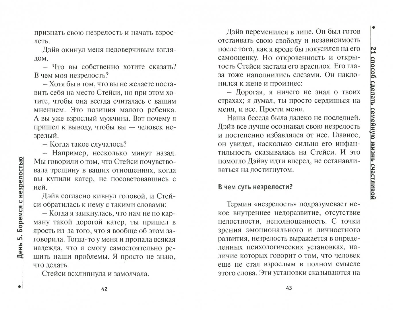 ОписаниеУ нас очень мало времени и очень много дел. В спешке проходит вся жизнь. Как же легко упустить из жизни главное - наши отношения с любимым человеком! Авторы составили программу для семейных пар, рассчитанную на 21 день - или на 21 занятие. Ее форма очень подходит для нашего высокого темпа жизни. Каждая глава содержит изложение принципов, на которых строится брак, и практические шаги, которые позволяют эти принципы осуществить. Отличительная особенность книги - концентрированное содержание в ней полезной информации. Она поможет сломать порочные схемы поведения и возродить доверие между супругами.2-е изданиеУ нас очень мало времени и очень много дел. В спешке проходит вся жизнь. Как же легко упустить из жизни главное - наши отношения с любимым человеком! Авторы составили программу для семейных пар, рассчитанную на 21 день - или на 21 занятие. Ее форма очень подходит для нашего высокого темпа жизни. Каждая глава содержит изложение принципов, на которых строится брак, и практические шаги, которые позволяют эти принципы осуществить. Отличительная особенность книги - концентрированное содержание в ней полезной информации. Она поможет сломать порочные схемы поведения и возродить доверие между супругами.2-е издание