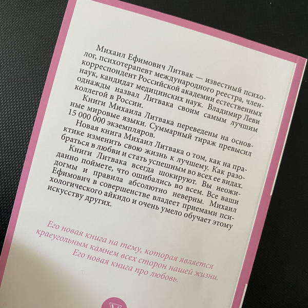 ОписаниеМихаил Ефимович Литвак - известный психолог, психотерапевт международного реестра, член-корреспондент Российской академии естественных наук, кандидат медицинских наук. Владимир Леви однажды назвал Литвака своим самым лучшим коллегой в России. Михаил Литвак - автор бестселлеров "Принцип сперматозоида", "Психологическое айкидо" и многих других. Книги Михаила Литвака переведены на основные мировые языки. Суммарный тираж превысил 15 000 000 экземпляров. Новая книга Михаил Литвака о том, как на практике изменить свою жизнь к лучшему. Как разобраться в любви и стать успешным во всех ее видах. Книги Литвака всегда шокируют. Вы неожиданно поймете, что ошибались во всем. Все ваши догмы и правила абсолютно неверны. Михаил Ефимович в совершенстве владеет приемами психологического айкидо и очень умело обучает этому искусству других.Его новая книга на тему, которая является краеугольным камнем всех сторон нашей жизни. Его новая книга про ЛЮБОВЬ.Михаил Ефимович Литвак - известный психолог, психотерапевт международного реестра, член-корреспондент Российской академии естественных наук, кандидат медицинских наук. Владимир Леви однажды назвал Литвака своим самым лучшим коллегой в России. Михаил Литвак - автор бестселлеров "Принцип сперматозоида", "Психологическое айкидо" и многих других. Книги Михаила Литвака переведены на основные мировые языки. Суммарный тираж превысил 15 000 000 экземпляров. Новая книга Михаил Литвака о том, как на практике изменить свою жизнь к лучшему. Как разобраться в любви и стать успешным во всех ее видах. Книги Литвака всегда шокируют. Вы неожиданно поймете, что ошибались во всем. Все ваши догмы и правила абсолютно неверны. Михаил Ефимович в совершенстве владеет приемами психологического айкидо и очень умело обучает этому искусству других.Его новая книга на тему, которая является краеугольным камнем всех сторон нашей жизни. Его новая книга про ЛЮБОВЬ.
