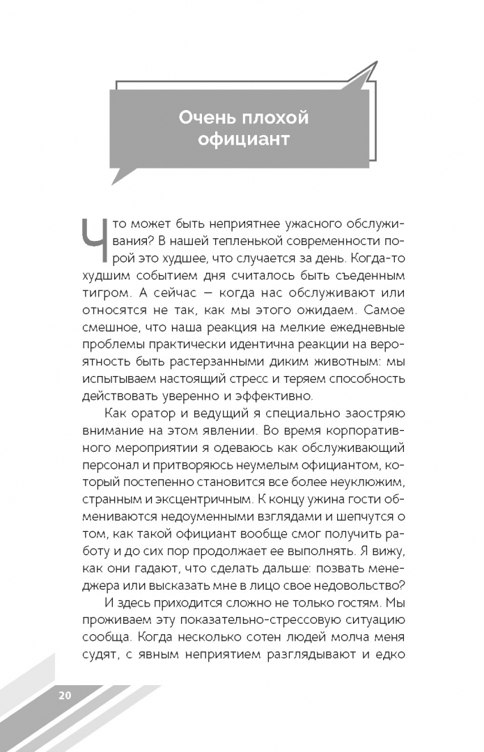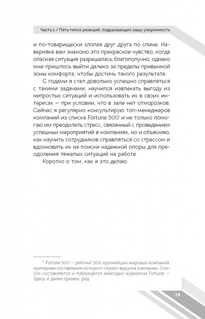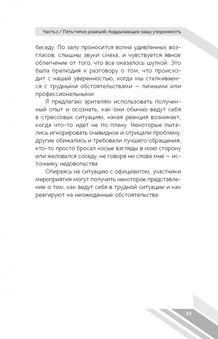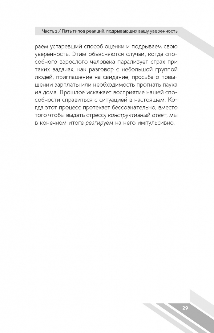 ОписаниеВы когда-нибудь отказывались от привлекательных возможностей в карьере или отношениях просто потому, что боялись рискнуть? Приходилось ли вам подавлять свои эмоции и потребности, чтобы ненароком кого-то не обидеть? Стресс придает вам сил - или отнимает их? Эта книга поможет вам извлекать пользу из любых напряженных ситуаций, легко справляться со стрессом и даже использовать его во благо. Вы сможете:- Принимать осознанные и верные решения, даже когда на выбор есть всего несколько секунд.- Достигать своих целей и отстаивать ключевые ценности, а не скрывать их из-за страха критики и неодобрения.- Ясно видеть свои автоматические реакции на стресс и не упускать чудесные возможности, которые встречаются на жизненном пути.- Использовать энергию стресса для исполнения заветных желаний, улучшения карьеры и личной жизни.Рик Льюис - профессиональный оратор и корпоративный тренер, консультирующий представителей крупнейших американских компаний. Эта небольшая, но яркая и остроумная книга наполнена советами и практиками, которые помогут превратить трудности повседневной жизни в бесконечный источник развития и роста. Взгляните на стресс с неожиданной стороны - и тогда вы сможете оседлать его, как серферы ловят волну, а не тонуть в нем, топя свое здоровье и благополучие.СвернутьВы когда-нибудь отказывались от привлекательных возможностей в карьере или отношениях просто потому, что боялись рискнуть? Приходилось ли вам подавлять свои эмоции и потребности, чтобы ненароком кого-то не обидеть? Стресс придает вам сил - или отнимает их? Эта книга поможет вам извлекать пользу из любых напряженных ситуаций, легко справляться со стрессом и даже использовать его во благо. Вы сможете:- Принимать осознанные и верные решения, даже когда на выбор есть всего несколько секунд.- Достигать своих целей и отстаивать ключевые ценности, а не скрывать их из-за страха критики и неодобрения.- Ясно видеть свои автоматические реакции на стресс и не упускать чудесные возможности, которые встречаются на жизненном пути.- Использовать энергию стресса для исполнения заветных желаний, улучшения карьеры и личной жизни.Рик Льюис - профессиональный оратор и корпоративный тренер, консультирующий представителей крупнейших американских компаний. Эта небольшая, но яркая и остроумная книга наполнена советами и практиками, которые помогут превратить трудности повседневной жизни в бесконечный источник развития и роста. Взгляните на стресс с неожиданной стороны - и тогда вы сможете оседлать его, как серферы ловят волну, а не тонуть в нем, топя свое здоровье и благополучие.СвернутьСвернуть