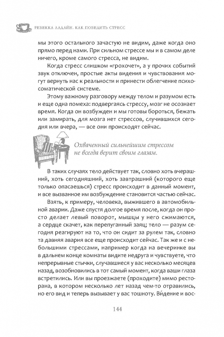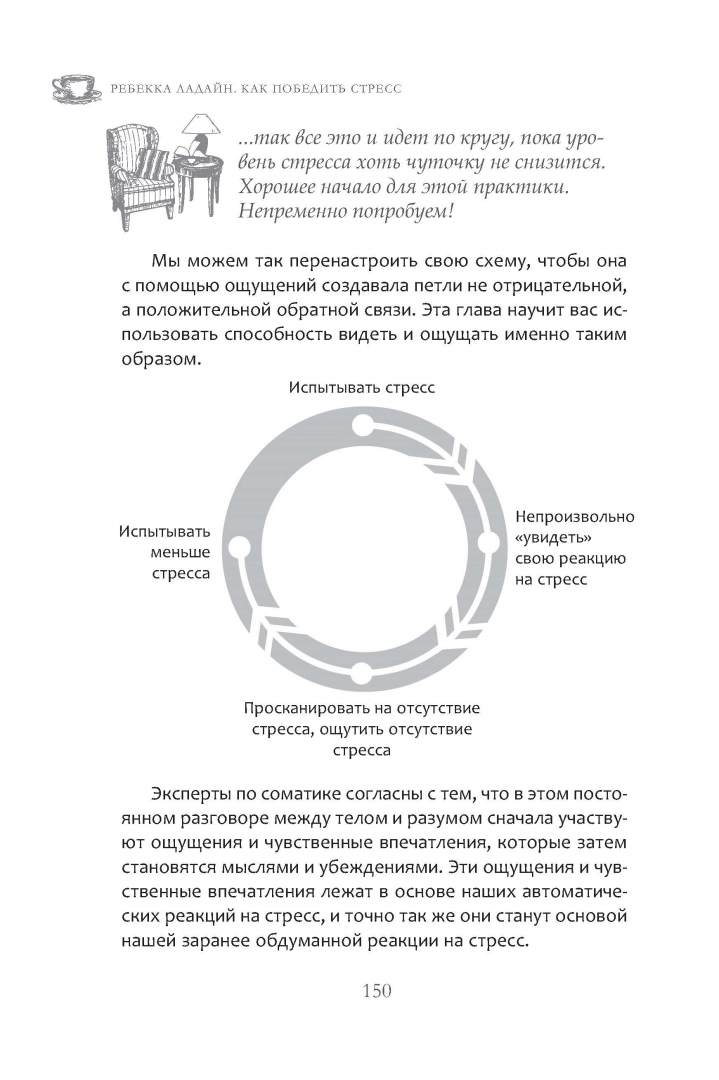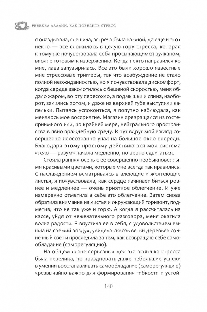 ОписаниеСегодня стресс является "новой нормой". Если его не контролировать, именно он диктует нам, что думать, что чувствовать и как действовать. А перегруженность, нервозность и удрученность становятся настолько привычным состоянием, что мы начинаем забывать, как жить иначе.Уже на первых страницах книги психотерапевта Ребекки Ладайн вас ждут практические задания, которые помогут определить уровень стресса, ваши индивидуальные триггеры, вызывающие его, и то, как на происходящее реагирует тело. Такая самодиагностика позволит выбрать нужные инструменты из всего арсенала антистрессовых средств, которые предлагает автор. Мощные практики телесно-ориентированной терапии позволят сбросить настройки режима выживания, в котором тревога вынуждает вас жить. А благодаря выполнению упражнений для стимуляции блуждающего нерва, вы научитесь не только ослаблять слишком острую реакцию на стресс, но и разовьете психологическую устойчивость. И сможете сохранять спокойствие практически в любых обстоятельствах.СвернутьСегодня стресс является "новой нормой". Если его не контролировать, именно он диктует нам, что думать, что чувствовать и как действовать. А перегруженность, нервозность и удрученность становятся настолько привычным состоянием, что мы начинаем забывать, как жить иначе.Уже на первых страницах книги психотерапевта Ребекки Ладайн вас ждут практические задания, которые помогут определить уровень стресса, ваши индивидуальные триггеры, вызывающие его, и то, как на происходящее реагирует тело. Такая самодиагностика позволит выбрать нужные инструменты из всего арсенала антистрессовых средств, которые предлагает автор. Мощные практики телесно-ориентированной терапии позволят сбросить настройки режима выживания, в котором тревога вынуждает вас жить. А благодаря выполнению упражнений для стимуляции блуждающего нерва, вы научитесь не только ослаблять слишком острую реакцию на стресс, но и разовьете психологическую устойчивость. И сможете сохранять спокойствие практически в любых обстоятельствах.СвернутьСвернуть