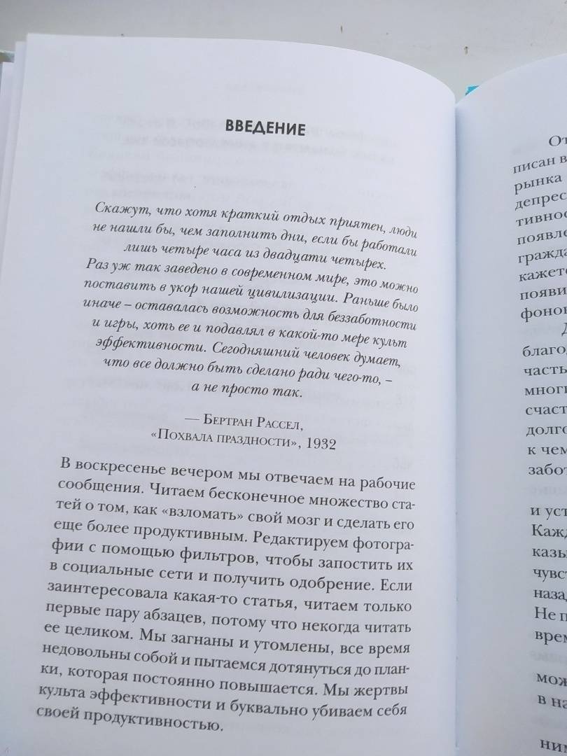 ОписаниеВ бесконечном стремлении стать успешнее, умнее и красивее, люди работают на износ, получая "в награду" лишь одиночество и неудовлетворенность. Мы лезем из кожи вон, задираем планку все выше и гонимся за сверхрезультатами, напрочь забывая об истинных желаниях и склонностях. Так стоит ли становиться жертвами культа эффективности и буквально убивать себя продуктивностью? Не пора ли просто отдохнуть? Как выяснилось, многие не умеют этого делать, поэтому искусству праздности нужно заново учиться. Селеста Хэдли поможет вам вырваться из замкнутого круга вечных перегрузок, начать жить полной жизнью и обрести гармонию с собой.В бесконечном стремлении стать успешнее, умнее и красивее, люди работают на износ, получая "в награду" лишь одиночество и неудовлетворенность. Мы лезем из кожи вон, задираем планку все выше и гонимся за сверхрезультатами, напрочь забывая об истинных желаниях и склонностях. Так стоит ли становиться жертвами культа эффективности и буквально убивать себя продуктивностью? Не пора ли просто отдохнуть? Как выяснилось, многие не умеют этого делать, поэтому искусству праздности нужно заново учиться. Селеста Хэдли поможет вам вырваться из замкнутого круга вечных перегрузок, начать жить полной жизнью и обрести гармонию с собой.