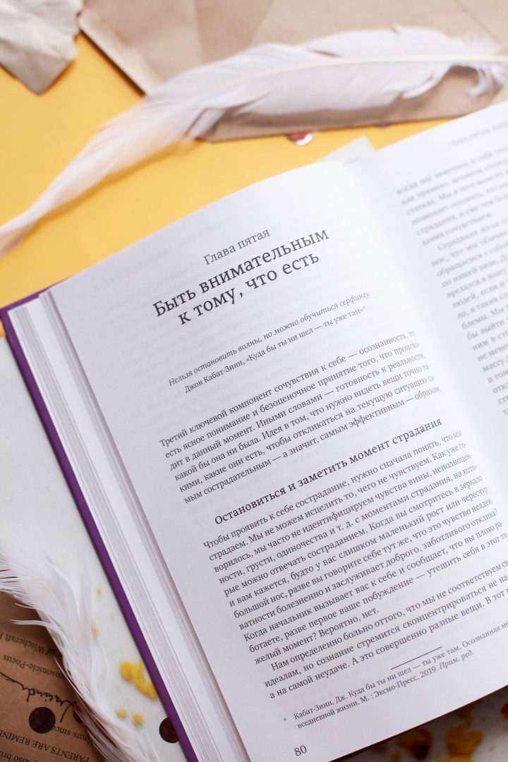 ОписаниеДоктор Нефф, ведущий мировой эксперт в теме самосострадания, объясняет, как исправить деструктивные эмоциональные паттерны, чтобы быть здоровее, счастливее и эффективнее.В нашей культуре поощряется требовательность к себе. Мы стремимся быть лучше, привлекательнее, сильнее, чем окружающие, прилагаем для этого много усилий, но на деле всегда находится кто-то более умный, успешный, привлекательный, чем вы. И когда это обнаруживается, внутренний критик просыпается, самооценка падает, а вместе с ней притупляется ощущение счастья и удовлетворенности.Однако есть альтернатива самооценке - самосострадание. Согласно результатам исследования доктора Кристин Нефф, люди, которые с сочувствием относятся к себе и своим недостаткам, более счастливы, нежели те, кто склонен себя осуждать. Кроме того, самосострадание дает нам чувство безопасности и собственного достоинства, что очень важно, особенно в те времена, когда падает самооценка. Самосострадание подразумевает три компонента (осознанность, доброта к себе и восприятие себя как части сообщества).Из книги вы узнаете, почему важно сострадать самому себе (а не просто любить себя!) и поддерживать себя так же, как вы поддержали бы хорошего друга. В книге есть практические упражнения и истории, благодаря которым вы научитесь быть к себе по-настоящему добрым.Для кого эта книга:Для всех, кому необходима поддержка и забота.Для тех, кто страдает от низкой самооценки .Для тех, кто слишком критичен по отношению к себе и часто недоволен собой.От автора:Беспрерывно насыщая свою потребность в положительной самооценке, мы немного напоминаем человека, объедающегося конфетами. Мы ловим кайф от сахара, но тут его уровень начинает падать. И маятник сразу движется в другую сторону, наступает отчаяние: мы понимаем, что, как бы нам этого ни хотелось, мы не можем всегда винить в своих проблемах других людей. Мы не можем всегда чувствовать себя особенными и выше среднего уровня. Часто это приводит к катастрофическим результатам. Мы смотримся в зеркало, нам не нравится то, что мы видим (как в фигуральном, так и в буквальном смысле), и нам становится стыдно. Признав наконец какой-то свой недостаток или промах, большинство из нас обходится с собой невероятно сурово. "Я недостаточно хорош. Я ничего не стою". Если честность связана со столь строгим осуждением, неудивительно, что мы скрываем от себя правду.В случаях, когда провести себя нелегко - например, при сравнении своего веса с весом фотомоделей или своего счета в банке со счетами богатых и преуспевающих людей, - мы причиняем себе невероятную душевную боль. Мы теряем веру в себя, начинаем сомневаться в своих способностях и утрачиваем надежду. В этом плачевном состоянии мы, конечно, бросаемся еще больше винить себя, твердить, какие мы пассивные неудачники, и увязаем все крепче и крепче.И пусть даже нам удается взять себя в руки - идеал человека, считающегося "достаточно хорошим", все время кажется мучительно недосягаемым. Мы должны быть и умными, и физически крепкими, и стильными, и интересными, и преуспевающими, и сексуальными. Ах да, и одухотворенными тоже. И каких бы успехов мы ни добивались, нас не покидает ощущение, что у кого-то получается еще лучше. Этот образ мыслей приводит к шокирующим результатам: миллионы людей вынуждены каждый день принимать лекарств