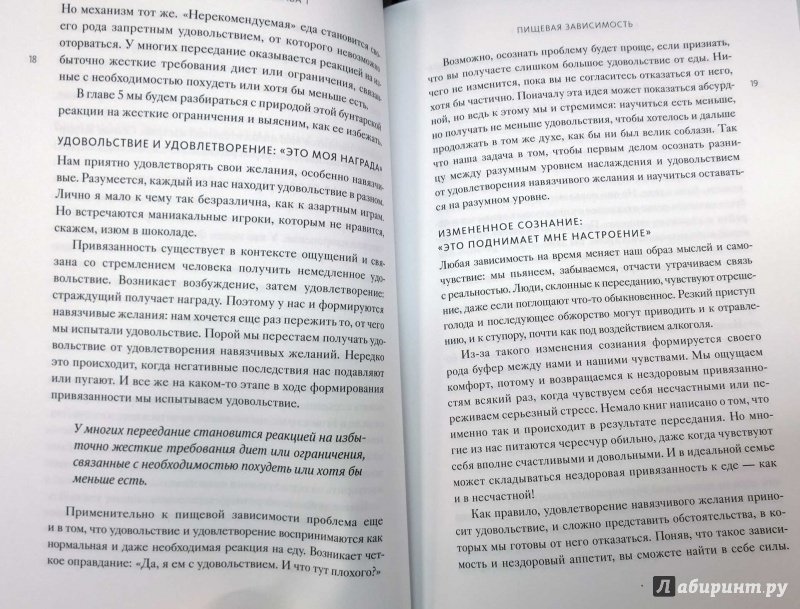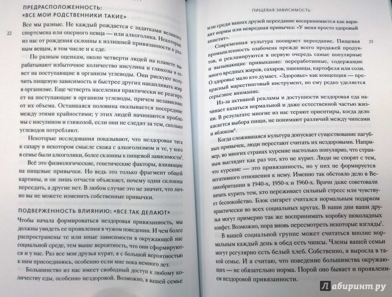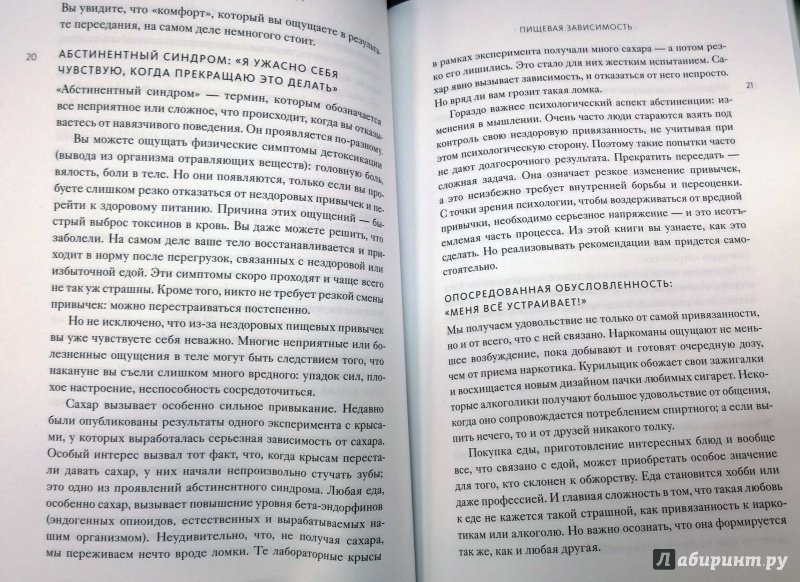 ОписаниеО книгеРазвенчание мифов о диетах, здоровом питании и пищевой зависимости.Подходит ли вам одно из этих утверждений?- Вы знаете, что едите слишком много, но если уменьшить порцию, вы не наедаетесь;- Вы то и дело что-то перехватываете даже после ужина;- Вы открываете пачку печенья, собираясь съесть одно-два, но вряд ли остановитесь, пока не съедите все;- Вы голодны даже после того, как плотно поели;- Вам часто бывает плохо после еды (например, хочется спать, подташнивает, ощущается тяжесть);- Вы едите слишком быстро, а снизить темп вам сложно;- Вам сложно соблюдать диету, а если все же удается, то после окончания диеты вес быстро возвращается;- Иногда вам очень хочется наесться чего-нибудь вредного, чего вы обычно не едите, и позже вы об этом, конечно, жалеете;- Сахар, кофеин и /или никотин - важные для вас источники энергииЕсли да - возможно, у вас пищевая зависимость. Она может проявляться по-разному. От нее страдают и люди с нормальным весом, и те, у кого избыточный вес или даже ожирение. Пищевая зависимость может наблюдаться даже у тех, кто весит недостаточно: некоторым удается оставаться довольно худыми, питаясь при этом исключительно вредной едой.Эта книга поможет вам преодолеть пищевую зависимость, как бы она ни проявлялась. Вы сможете развить контроль над своими пищевыми привычками, сбросить вес и удерживать его на стабильном уровне.Для кого эта книгаДля всех, кто хочет перестать зависеть от еды. Для всех, кто разочаровался в диетах.Об автореДжиллиан Райли с 1982 года ведет консультации и организует семинары для людей, стремящихся бросить курить или взять под контроль свои пищевые привычки. Она и сама раньше много курила и регулярно переедала, поэтому использует в работе и собственный опыт преодоления навязчивых желаний, и наработки, сделанные за годы работы с клиентами.Джиллиан Райли - автор популярных книг для тех, кто хочет отказаться от курения или изменить свои пищевые привычки.СвернутьО книгеРазвенчание мифов о диетах, здоровом питании и пищевой зависимости.Подходит ли вам одно из этих утверждений?- Вы знаете, что едите слишком много, но если уменьшить порцию, вы не наедаетесь;- Вы то и дело что-то перехватываете даже после ужина;- Вы открываете пачку печенья, собираясь съесть одно-два, но вряд ли остановитесь, пока не съедите все;- Вы голодны даже после того, как плотно поели;- Вам часто бывает плохо после еды (например, хочется спать, подташнивает, ощущается тяжесть);- Вы едите слишком быстро, а снизить темп вам сложно;- Вам сложно соблюдать диету, а если все же удается, то после окончания диеты вес быстро возвращается;- Иногда вам очень хочется наесться чего-нибудь вредного, чего вы обычно не едите, и позже вы об этом, конечно, жалеете;- Сахар, кофеин и /или никотин - важные для вас источники энергииЕсли да - возможно, у вас пищевая зависимость. Она может проявляться по-разному. От нее страдают и люди с нормальным весом, и те, у кого избыточный вес или даже ожирение. Пищевая зависимость может наблюдаться даже у тех, кто весит недостаточно: некоторым удается оставаться довольно худыми, питаясь при этом исключительно вредной едой.Эта книга поможет вам преодолеть пищевую зависимость, как бы она ни проявлялась. Вы сможете развить контроль над своими пищевыми привычками, сбросить вес и удерживать его на стабильном уровне.Для кого эта кни