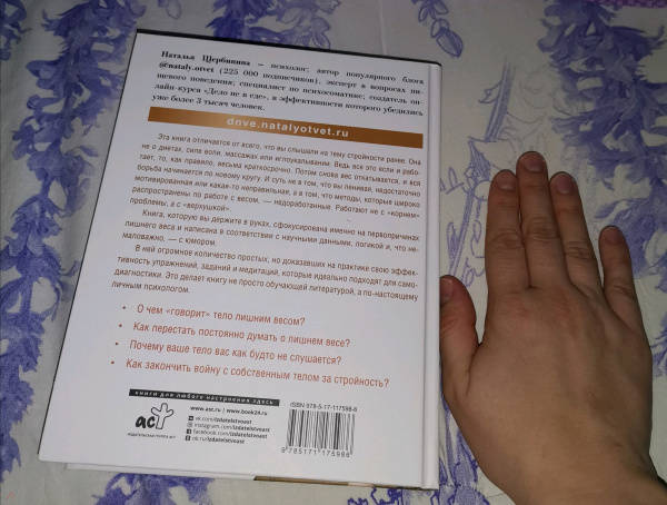 СвернутьЭта книга отличается от всего, что вы слышали на тему стройности ранее. Она не о диетах, силе воли, массажах или иглоукалывании. Ведь все это если и работает, то, как правило, весьма краткосрочно. Потом снова вес откатывается, и вся борьба начинается по новому кругу. И суть не в том, что вы ленивая, недостаточно мотивированная или какая-то неправильная, а в том, что методы, которые широко распространены по работе с весом, — недоработанные. Работают не с "корнем" проблемы, а с "верхушкой".Книга, которую вы держите в руках, сфокусирована именно на первопричинах лишнего веса и написана в соответствии с научными данными, логикой и, что немаловажно, — с юмором.В ней огромное количество простых, но доказавших на практике свою эффективность упражнений, заданий и медитаций, которые идеально подходят для самодиагностики. Это делает книгу не просто обучающей литературой, а по-настоящему личным психологом.О чем "говорит" тело лишним весом?Как перестать постоянно думать о лишнем весе?Почему ваше тело вас как будто не слушается?Как закончить войну с собственным телом за стройность?Наталья Щербинина — психолог, автор популярного блога @nataly.otvet (225 000 подписчиков), эксперт в вопросах пищевого поведения. Специалист по психосоматике,