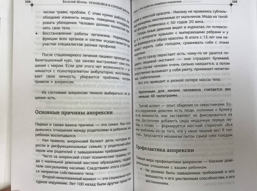 СвернутьДоступно и по-человечески в книге рассказывается о состояниях, которые нужно отличать от «просто устала» и «просто настроение плохое». Мы поговорим о депрессиях, панических атаках, нарушениях пищевого поведения. Узнаем, что не только с нами случаются все эти несчастья. И великие мира сего страдали ОКР и булимией. Василий Шуров, главный нарколог клиники «Первый шаг», поделится с нами способами помочь себе и убедит пойти к врачу, когда у нас не хватает сил справиться самостоятельно. Не зря у него 500 тыс. подписчиков на ютуб канале, и он выступает в качестве эксперта на телевидении и в судебных процессах, является звездой в популярных шоу «Мужское и Женское» и «Пусть говорят».«Успокойся и слушай доктора» – книга, которая расскажет о самых распространенных психических расстройствах и поможет ответить на следующие вопросы: