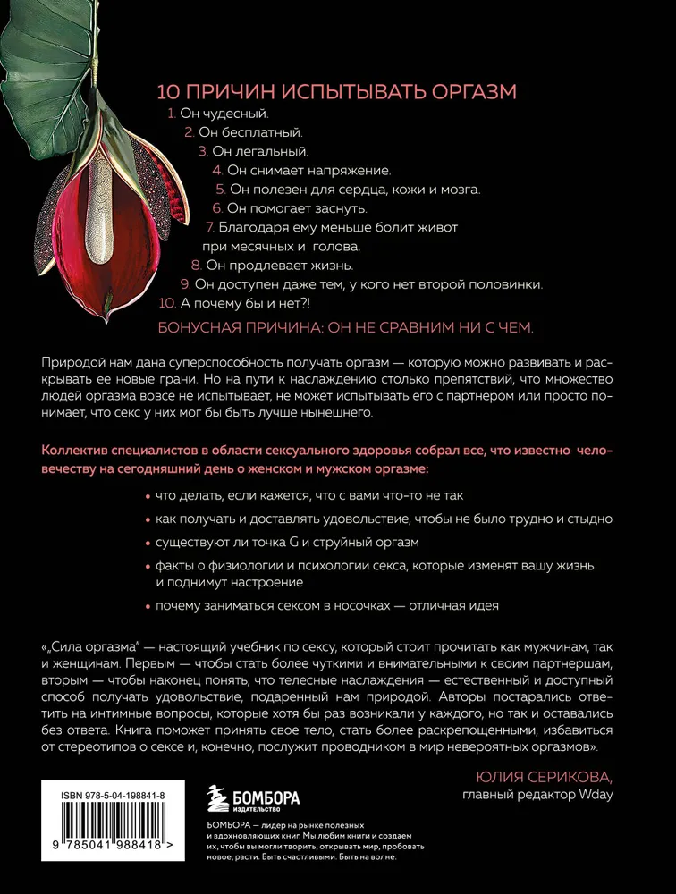 ОписаниеАннотация к книге "Сила оргазма. Большая книга о суперспособностях, которые может открыть в себе каждый" Солот Д., Миллер М., Берк М.:Природой нам дана суперспособность, которую можно развивать и раскрывать ее новые грани. Но на пути к наслаждению столько препятствий, что множество людей оргазма вовсе не испытывает, не может испытывать его с партнером или просто понимает, что секс у них мог бы быть лучше нынешнего.Коллектив специалистов в области сексуального здоровья собрал все, что известно человечеству на сегодняшний день о женском и мужском оргазме. Читать дальше…