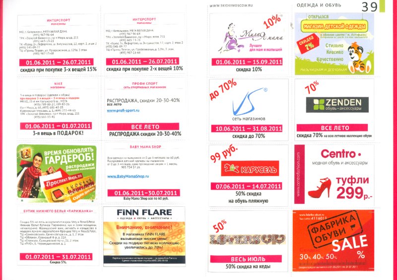 ОписаниеЗдесь собрана актуальная информация о скидках и акциях, которые проходят в крупных магазинах одежды, обуви и аксессуаров, ресторанах, туристических агентствах, салонах красоты, мебельных магазинах и развлекательных центрах.Важно, что купоны на скидки в наших журналах для вас - бесплатны! Получив журнал в руки, Вам нужно только предъявить его продавцу или поставщику услуги и Вы получите скидку, указанную на купоне.ВыбирайВырезайПокупайКупоны на скидки от 5 до 90% в каждом журнале!Здесь собрана актуальная информация о скидках и акциях, которые проходят в крупных магазинах одежды, обуви и аксессуаров, ресторанах, туристических агентствах, салонах красоты, мебельных магазинах и развлекательных центрах.Важно, что купоны на скидки в наших журналах для вас - бесплатны! Получив журнал в руки, Вам нужно только предъявить его продавцу или поставщику услуги и Вы получите скидку, указанную на купоне.ВыбирайВырезайПокупайКупоны на скидки от 5 до 90% в каждом журнале!