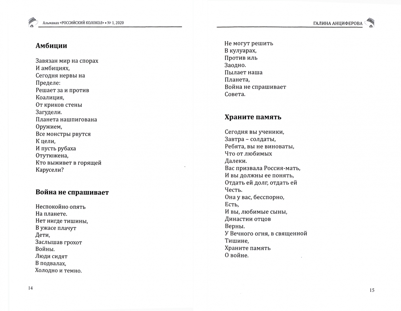 Чичкань, Коломейцева, Анциферова: Российский колокол. Альманах. Выпуск № 1, 2020