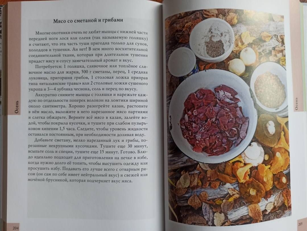 ОписаниеВ этой книге вы найдете не только большое разнообразие рецептов приготовления дичи, которые можно воспроизвести как на хорошо оборудованной базе, так и в лесу у костра или в избушке на печи, но также блюда из рыбы, грибов, диких растений, рецепты полезных заготовок, и описание приёмов, которые облегчат и ускорят приготовление еды в полевых условиях. Книга предназначена прежде всего для охотников, выезжающих на охоту на несколько дней, а также сотрудников охотничьих хозяйств, которые хотели бы хорошо готовить для своих клиентов в любой ситуации, но будет интересна и тем, кто просто любит готовить на природе.В этой книге вы найдете не только большое разнообразие рецептов приготовления дичи, которые можно воспроизвести как на хорошо оборудованной базе, так и в лесу у костра или в избушке на печи, но также блюда из рыбы, грибов, диких растений, рецепты полезных заготовок, и описание приёмов, которые облегчат и ускорят приготовление еды в полевых условиях. Книга предназначена прежде всего для охотников, выезжающих на охоту на несколько дней, а также сотрудников охотничьих хозяйств, которые хотели бы хорошо готовить для своих клиентов в любой ситуации, но будет интересна и тем, кто просто любит готовить на природе.
