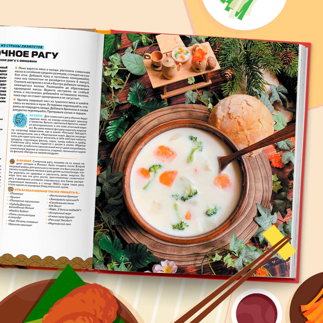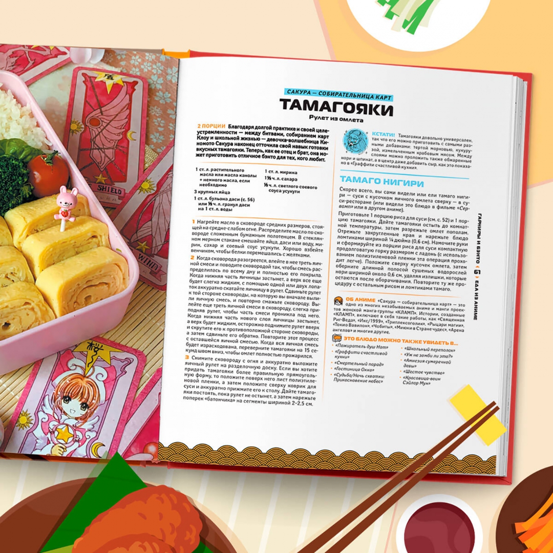 ОписаниеНезабываемое путешествие по миру еды из аниме! Воссоздайте на своей кухне аппетитные блюда, которые упоминались более чем в 500 ваших любимых аниме. Японская анимация отличается потрясающим дизайном, проработанными персонажами и увлекательными сюжетными линиями, а также наполнена множеством вкусной и разнообразной еды. Доводилось ли вам смотреть свое любимое аниме и ощущать острое желание вместе с героями насладиться сытным раменом, хрустящей темпурой или сочными гёдза? Теперь вы можете воплотить свои желания в реальность вместе с книгой "Еда из аниме"! Отправляйтесь в тур по аниме-еде и узнайте, какую еду предпочитают ваши любимые персонажи, а затем научитесь готовить ее дома! Вы сможете приготовить: - мисо тясю рамэн из "Наруто"; - рисовую кашу окаю от принцессы Мононокэ; - онигири из "Корзинки с фруктами"; - тайяки из "Моей геройской академии"; - никудзяга из "Токийского гуля". И многое другое! Вместе с рецептом вы узнаете интересные факты, лежащие в основе блюда, такие как история, культура, советы и многое другое. Идеальный подарок как для гурманов, так и для отаку. "Еда из аниме" - это всеобъемлющее руководство по приготовлению блюд из самого популярного японского вида искусства.СвернутьНезабываемое путешествие по миру еды из аниме! Воссоздайте на своей кухне аппетитные блюда, которые упоминались более чем в 500 ваших любимых аниме. Японская анимация отличается потрясающим дизайном, проработанными персонажами и увлекательными сюжетными линиями, а также наполнена множеством вкусной и разнообразной еды. Доводилось ли вам смотреть свое любимое аниме и ощущать острое желание вместе с героями насладиться сытным раменом, хрустящей темпурой или сочными гёдза? Теперь вы можете воплотить свои желания в реальность вместе с книгой "Еда из аниме"! Отправляйтесь в тур по аниме-еде и узнайте, какую еду предпочитают ваши любимые персонажи, а затем научитесь готовить ее дома! Вы сможете приготовить: - мисо тясю рамэн из "Наруто"; - рисовую кашу окаю от принцессы Мононокэ; - онигири из "Корзинки с фруктами"; - тайяки из "Моей геройской академии"; - никудзяга из "Токийского гуля". И многое другое! Вместе с рецептом вы узнаете интересные факты, лежащие в основе блюда, такие как история, культура, советы и многое другое. Идеальный подарок как для гурманов, так и для отаку. "Еда из аниме" - это всеобъемлющее руководство по приготовлению блюд из самого популярного японского вида искусства.СвернутьСвернуть