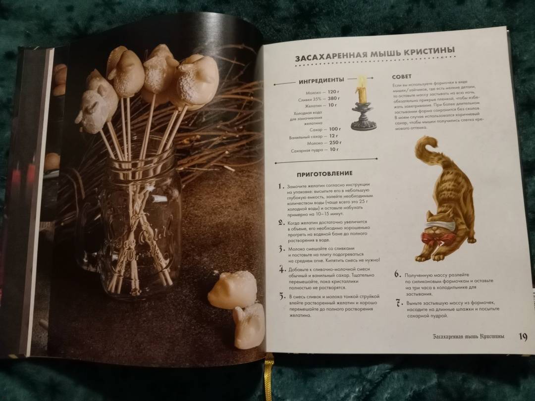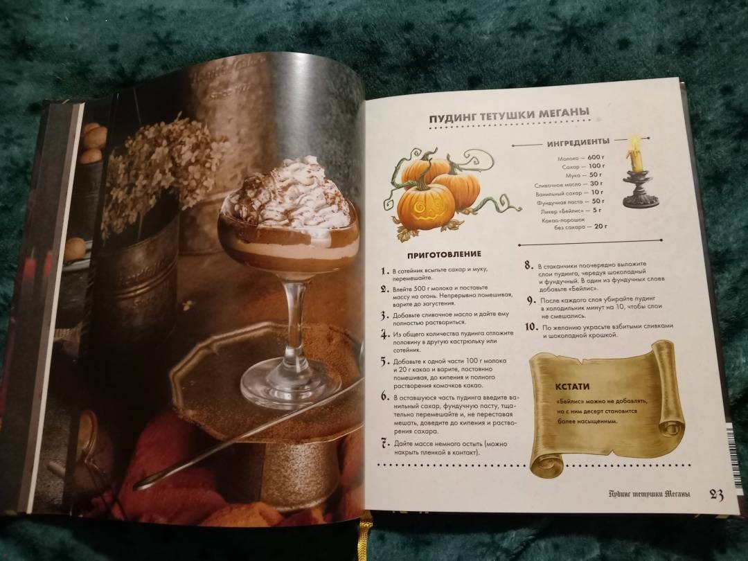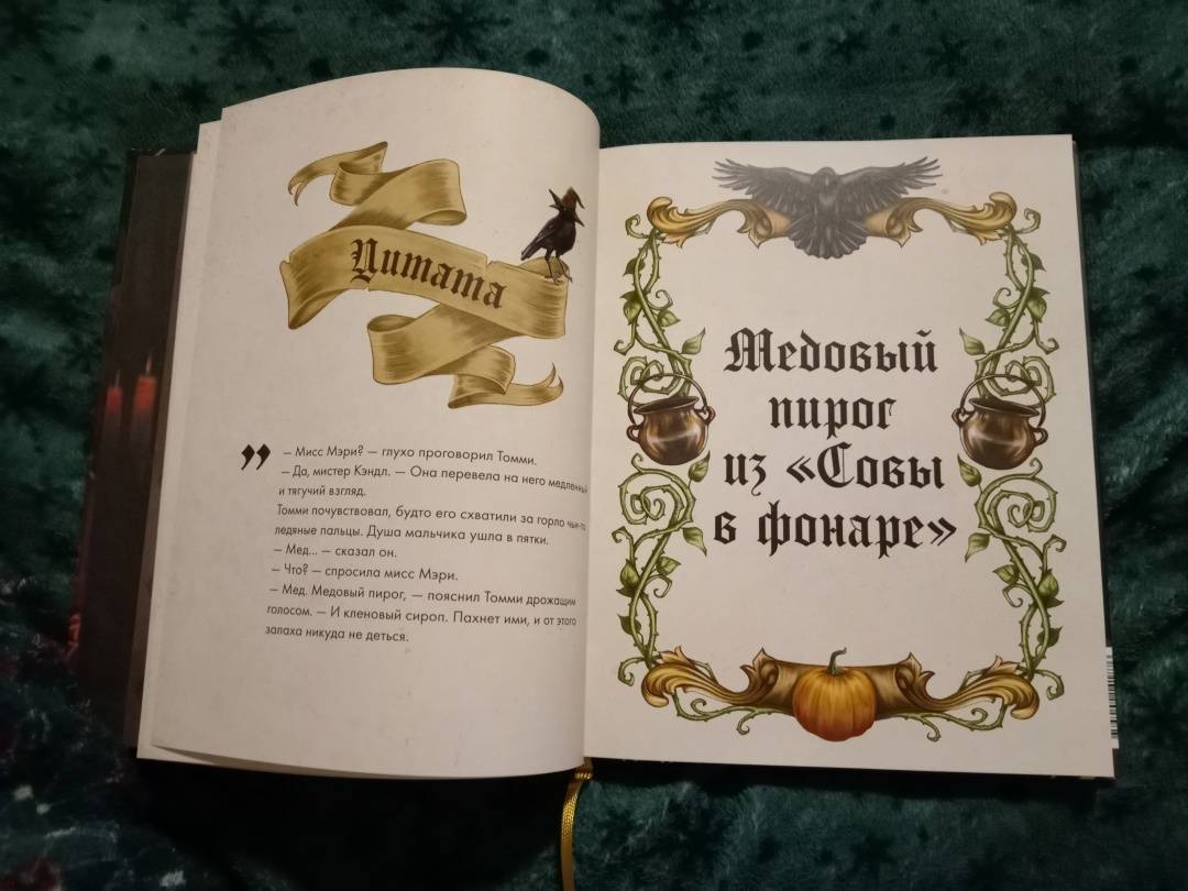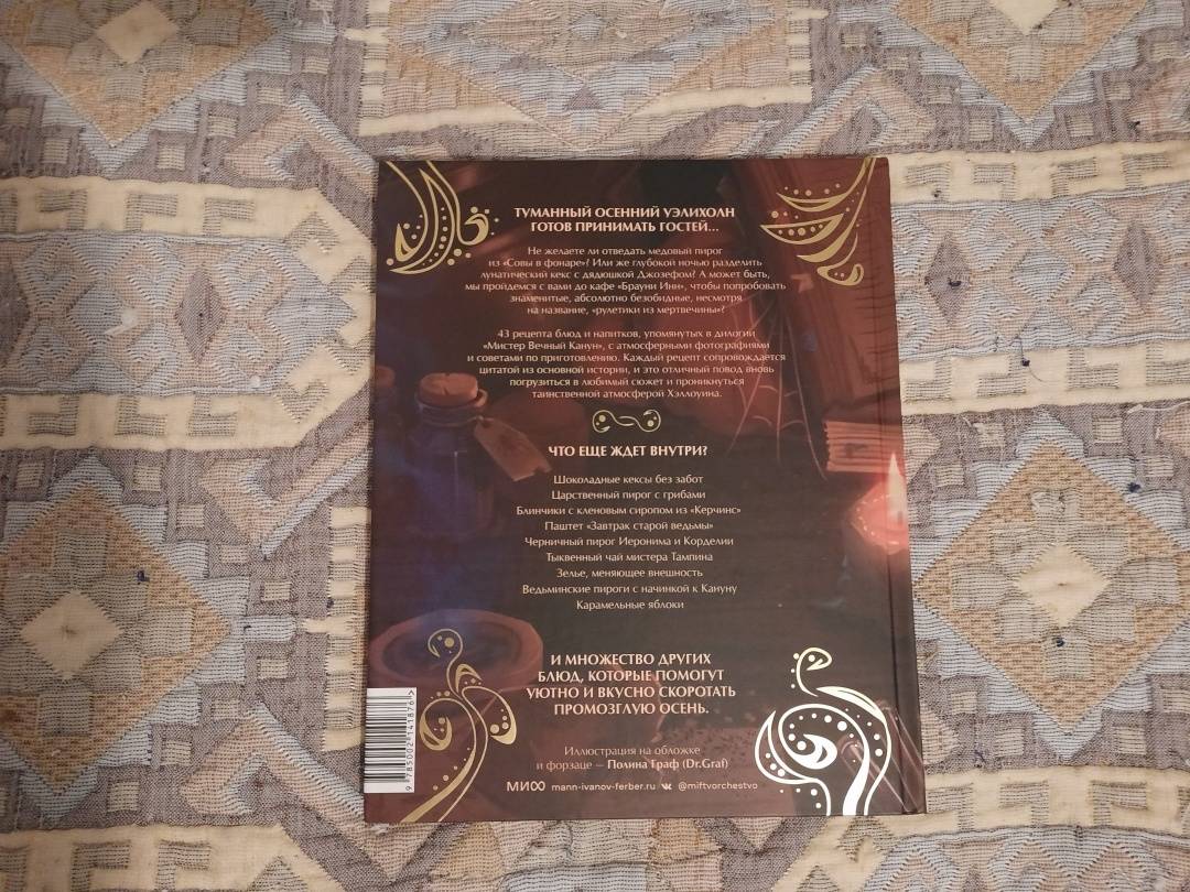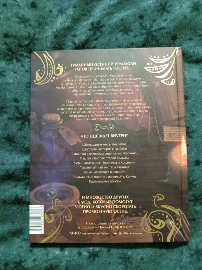 ОписаниеТуманный осенний Уэлихолн готов принимать гостей… Не желаете ли отведать медовый пирог из "Совы в фонаре"? Или же глубокой ночью разделить лунатический кекс с дядюшкой Джозефом? А может быть, мы пройдемся с вами до кафе "Брауни Инн", чтобы попробовать знаменитые, абсолютно безобидные, несмотря на название, "рулетики из мертвечины"? 43 рецепта блюд и напитков, упомянутых в дилогии "Мистер Вечный Канун", с атмосферными фотографиями и советами по приготовлению. А в конце книги - меню для празднования Кануна Хэллоуина на любой вкус. Только аккуратнее угощайтесь имбирным печеньем болтливой мадам Дикки: есть риск, что вы забудете обо всем во время ее рассказов, поэтому хватайте печеньки и бегите что есть мочи!Каждый рецепт сопровождается цитатой из основной истории, и это отличный повод вновь погрузиться в любимый сюжет и проникнуться таинственной атмосферой Хэллоуина.Что еще ждет внутри?Шоколадные кексы без заботЦарственный пирог с грибамиГорячий кофе с корицейБлинчики с кленовым сиропом из "Керчинс"Паштет "Завтрак старой ведьмы"Черничный пирог Иеронима и КорделииТыквенный чай мистера ТампинаЗелье, меняющее внешностьПряное овсяно-тыквенное печенье Кристины КэндлЖареные каштаны из УэлихолнаВедьминские пироги с начинкой к КанунуСвиные котлетки под присмотром КоннеллиКарамельные яблокиИ множество других блюд, которые помогут уютно и вкусно скоротать промозглую осень.СвернутьТуманный осенний Уэлихолн готов принимать гостей… Не желаете ли отведать медовый пирог из "Совы в фонаре"? Или же глубокой ночью разделить лунатический кекс с дядюшкой Джозефом? А может быть, мы пройдемся с вами до кафе "Брауни Инн", чтобы попробовать знаменитые, абсолютно безобидные, несмотря на название, "рулетики из мертвечины"? 43 рецепта блюд и напитков, упомянутых в дилогии "Мистер Вечный Канун", с атмосферными фотографиями и советами по приготовлению. А в конце книги - меню для празднования Кануна Хэллоуина на любой вкус. Только аккуратнее угощайтесь имбирным печеньем болтливой мадам Дикки: есть риск, что вы забудете обо всем во время ее рассказов, поэтому хватайте печеньки и бегите что есть мочи!Каждый рецепт сопровождается цитатой из основной истории, и это отличный повод вновь погрузиться в любимый сюжет и проникнуться таинственной атмосферой Хэллоуина.Что еще ждет внутри?Шоколадные кексы без заботЦарственный пирог с грибамиГорячий кофе с корицейБлинчики с кленовым сиропом из "Керчинс"Паштет "Завтрак старой ведьмы"Черничный пирог Иеронима и КорделииТыквенный чай мистера ТампинаЗелье, меняющее внешностьПряное овсяно-тыквенное печенье Кристины КэндлЖареные каштаны из УэлихолнаВедьминские пироги с начинкой к КанунуСвиные котлетки под присмотром КоннеллиКарамельные яблокиИ множество других блюд, которые помогут уютно и вкусно скоротать промозглую осень.СвернутьСвернуть