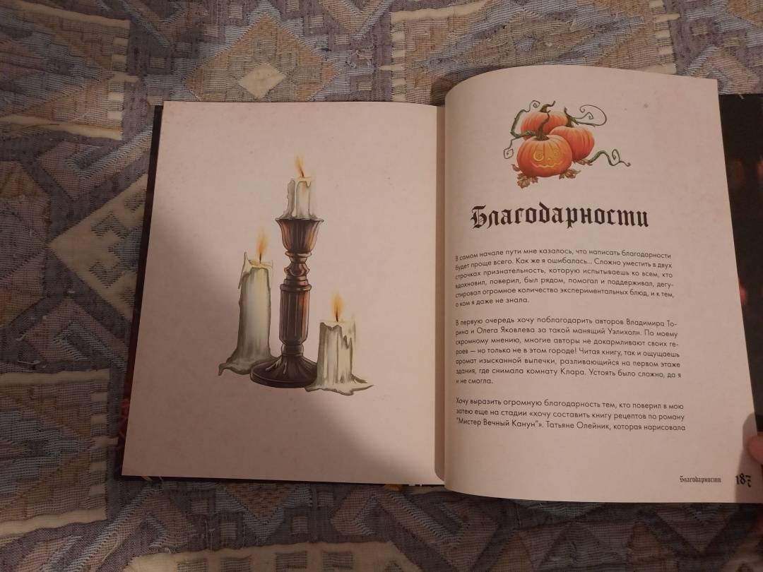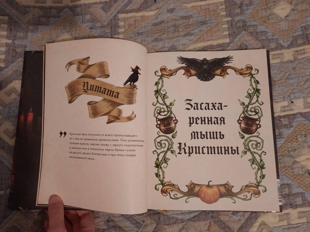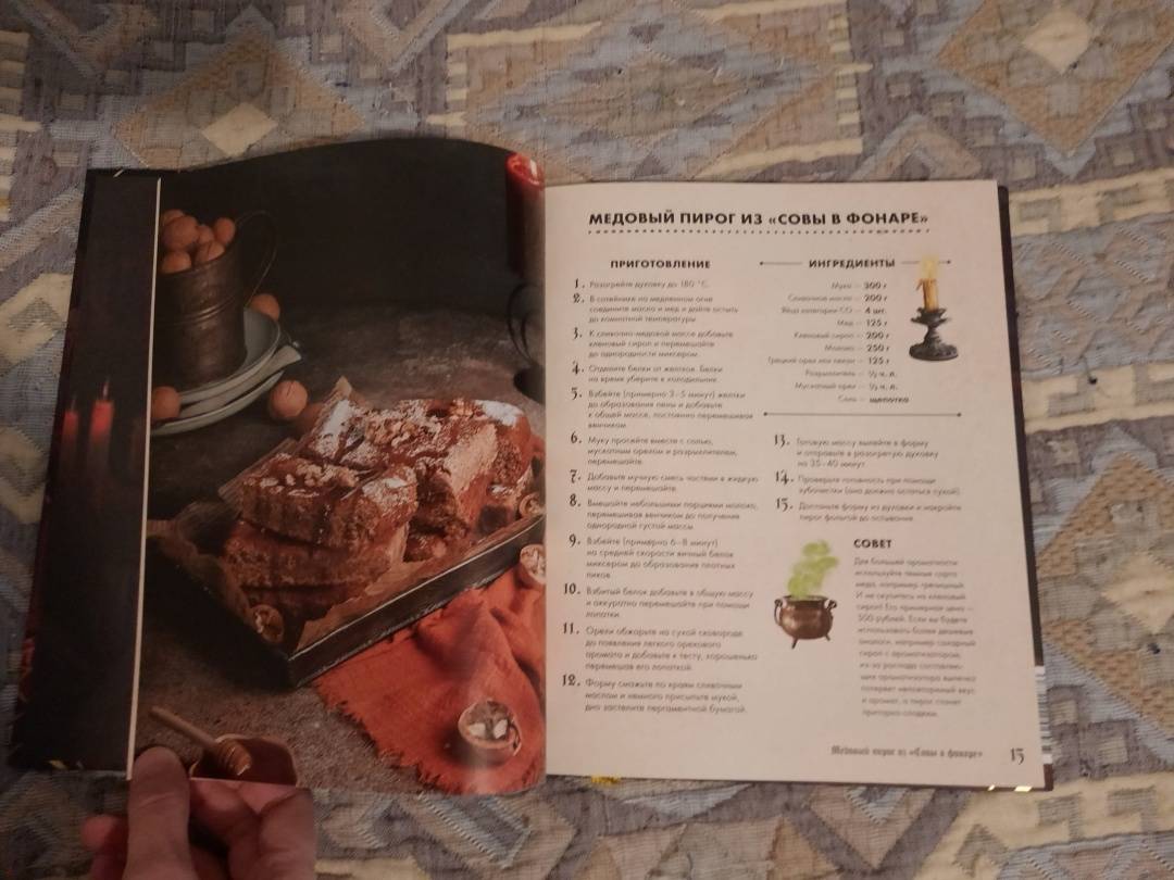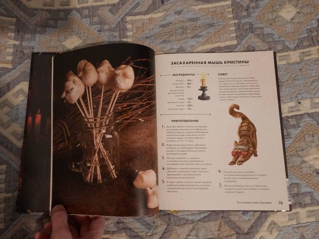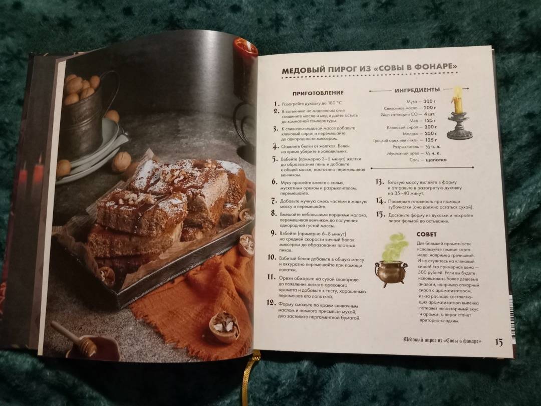 ОписаниеТуманный осенний Уэлихолн готов принимать гостей… Не желаете ли отведать медовый пирог из "Совы в фонаре"? Или же глубокой ночью разделить лунатический кекс с дядюшкой Джозефом? А может быть, мы пройдемся с вами до кафе "Брауни Инн", чтобы попробовать знаменитые, абсолютно безобидные, несмотря на название, "рулетики из мертвечины"? 43 рецепта блюд и напитков, упомянутых в дилогии "Мистер Вечный Канун", с атмосферными фотографиями и советами по приготовлению. А в конце книги - меню для празднования Кануна Хэллоуина на любой вкус. Только аккуратнее угощайтесь имбирным печеньем болтливой мадам Дикки: есть риск, что вы забудете обо всем во время ее рассказов, поэтому хватайте печеньки и бегите что есть мочи!Каждый рецепт сопровождается цитатой из основной истории, и это отличный повод вновь погрузиться в любимый сюжет и проникнуться таинственной атмосферой Хэллоуина.Что еще ждет внутри?Шоколадные кексы без заботЦарственный пирог с грибамиГорячий кофе с корицейБлинчики с кленовым сиропом из "Керчинс"Паштет "Завтрак старой ведьмы"Черничный пирог Иеронима и КорделииТыквенный чай мистера ТампинаЗелье, меняющее внешностьПряное овсяно-тыквенное печенье Кристины КэндлЖареные каштаны из УэлихолнаВедьминские пироги с начинкой к КанунуСвиные котлетки под присмотром КоннеллиКарамельные яблокиИ множество других блюд, которые помогут уютно и вкусно скоротать промозглую осень.СвернутьТуманный осенний Уэлихолн готов принимать гостей… Не желаете ли отведать медовый пирог из "Совы в фонаре"? Или же глубокой ночью разделить лунатический кекс с дядюшкой Джозефом? А может быть, мы пройдемся с вами до кафе "Брауни Инн", чтобы попробовать знаменитые, абсолютно безобидные, несмотря на название, "рулетики из мертвечины"? 43 рецепта блюд и напитков, упомянутых в дилогии "Мистер Вечный Канун", с атмосферными фотографиями и советами по приготовлению. А в конце книги - меню для празднования Кануна Хэллоуина на любой вкус. Только аккуратнее угощайтесь имбирным печеньем болтливой мадам Дикки: есть риск, что вы забудете обо всем во время ее рассказов, поэтому хватайте печеньки и бегите что есть мочи!Каждый рецепт сопровождается цитатой из основной истории, и это отличный повод вновь погрузиться в любимый сюжет и проникнуться таинственной атмосферой Хэллоуина.Что еще ждет внутри?Шоколадные кексы без заботЦарственный пирог с грибамиГорячий кофе с корицейБлинчики с кленовым сиропом из "Керчинс"Паштет "Завтрак старой ведьмы"Черничный пирог Иеронима и КорделииТыквенный чай мистера ТампинаЗелье, меняющее внешностьПряное овсяно-тыквенное печенье Кристины КэндлЖареные каштаны из УэлихолнаВедьминские пироги с начинкой к КанунуСвиные котлетки под присмотром КоннеллиКарамельные яблокиИ множество других блюд, которые помогут уютно и вкусно скоротать промозглую осень.СвернутьСвернуть