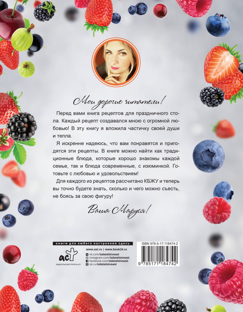 ОписаниеМои дорогие читатели!Перед вами книга рецептов для праздничного стола. Каждый рецепт создавался мною с огромной любовью! В эту книгу я вложила частичку своей души и тепла.Я искренне надеюсь, что вам понравятся и пригодятся эти рецепты. В книге можно найти как традиционные блюда, которые хорошо знакомы каждой семье, так и блюда современные, с изюминкой. Готовьте с любовью и удовольствием!Для каждого из рецептов рассчитано КБЖУ и теперь вы точно будете знать, сколько и чего можно съесть, не боясь за свою фигуру!Мои дорогие читатели!Перед вами книга рецептов для праздничного стола. Каждый рецепт создавался мною с огромной любовью! В эту книгу я вложила частичку своей души и тепла.Я искренне надеюсь, что вам понравятся и пригодятся эти рецепты. В книге можно найти как традиционные блюда, которые хорошо знакомы каждой семье, так и блюда современные, с изюминкой. Готовьте с любовью и удовольствием!Для каждого из рецептов рассчитано КБЖУ и теперь вы точно будете знать, сколько и чего можно съесть, не боясь за свою фигуру!