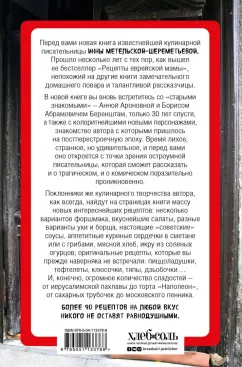 ОписаниеНовая книга известнейшей кулинарной писательницы Инны Метельской-Шереметьевой - это яркое и увлекательное продолжение бестселлера "Рецепты еврейской мамы", вышедшей несколько лет назад и непохожей на другие книги замечательного домашнего повара и талантливой рассказчицы. В новой книге вы вновь встретитесь со "старыми знакомыми" - Анной Ароновной и Борисом Абрамовичем Беренштам, только 30 лет спустя, а также с колоритнейшими новыми персонажами, знакомство автора с которыми пришлось на постперестроечную эпоху. Время лихое, странное, но удивительное, и перед вами оно откроется с точки зрения остроумной писательницы, которая сможет рассказать и о трагическом, и о комическом поразительно проникновенно. Поклонники же кулинарного творчества автора, как всегда, найдут на страницах книги много нового - более 90 рецептов на любой вкус никого не оставят равнодушными.Новая книга известнейшей кулинарной писательницы Инны Метельской-Шереметьевой - это яркое и увлекательное продолжение бестселлера "Рецепты еврейской мамы", вышедшей несколько лет назад и непохожей на другие книги замечательного домашнего повара и талантливой рассказчицы. В новой книге вы вновь встретитесь со "старыми знакомыми" - Анной Ароновной и Борисом Абрамовичем Беренштам, только 30 лет спустя, а также с колоритнейшими новыми персонажами, знакомство автора с которыми пришлось на постперестроечную эпоху. Время лихое, странное, но удивительное, и перед вами оно откроется с точки зрения остроумной писательницы, которая сможет рассказать и о трагическом, и о комическом поразительно проникновенно. Поклонники же кулинарного творчества автора, как всегда, найдут на страницах книги много нового - более 90 рецептов на любой вкус никого не оставят равнодушными.