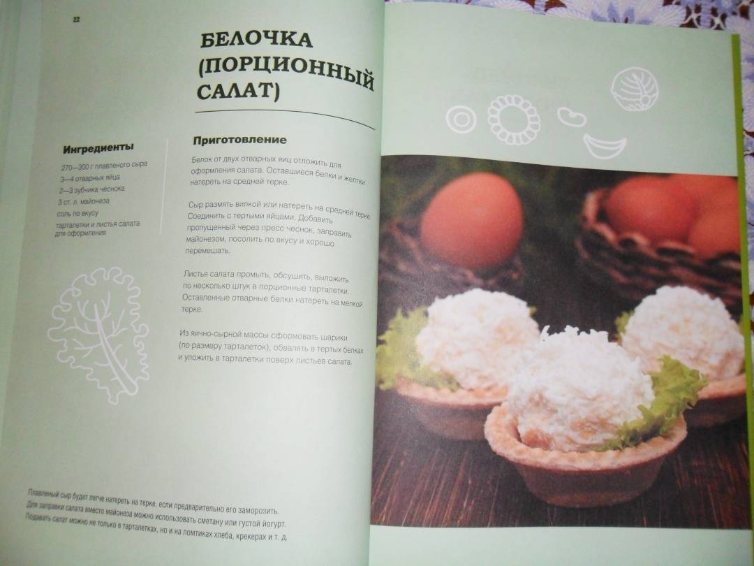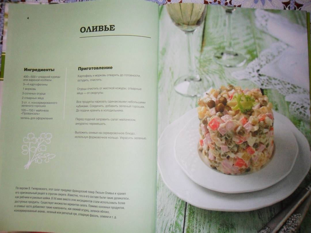 ОписаниеКакой Новый год без любимого оливье? А день рождения без маминого салата «Мимоза»? Разве можно представить настоящий праздничный стол без «Цезаря» и сельди под шубой? Самые любимые салаты, которые готовили нам мамы в детстве и которые теперь мы готовим своим детям.Морковь по-корейски, шопский салат, салат «Весенний», салат с крабовыми палочками, классический греческий салат — проверенные времен и все также любимые миллионами. Салаты, которые стали настоящим кулинарными бестселлерами.• Салат «Гранатовый браслет»• Салат «Тиффани» в бокалах• Французский салат «Лионез»• Вальдорфский салат• Салат с дыней и ветчинойКакой Новый год без любимого оливье? А день рождения без маминого салата «Мимоза»? Разве можно представить настоящий праздничный стол без «Цезаря» и сельди под шубой? Самые любимые салаты, которые готовили нам мамы в детстве и которые теперь мы готовим своим детям.Морковь по-корейски, шопский салат, салат «Весенний», салат с крабовыми палочками, классический греческий салат — проверенные времен и все также любимые миллионами. Салаты, которые стали настоящим кулинарными бестселлерами.• Салат «Гранатовый браслет»• Салат «Тиффани» в бокалах• Французский салат «Лионез»• Вальдорфский салат• Салат с дыней и ветчиной