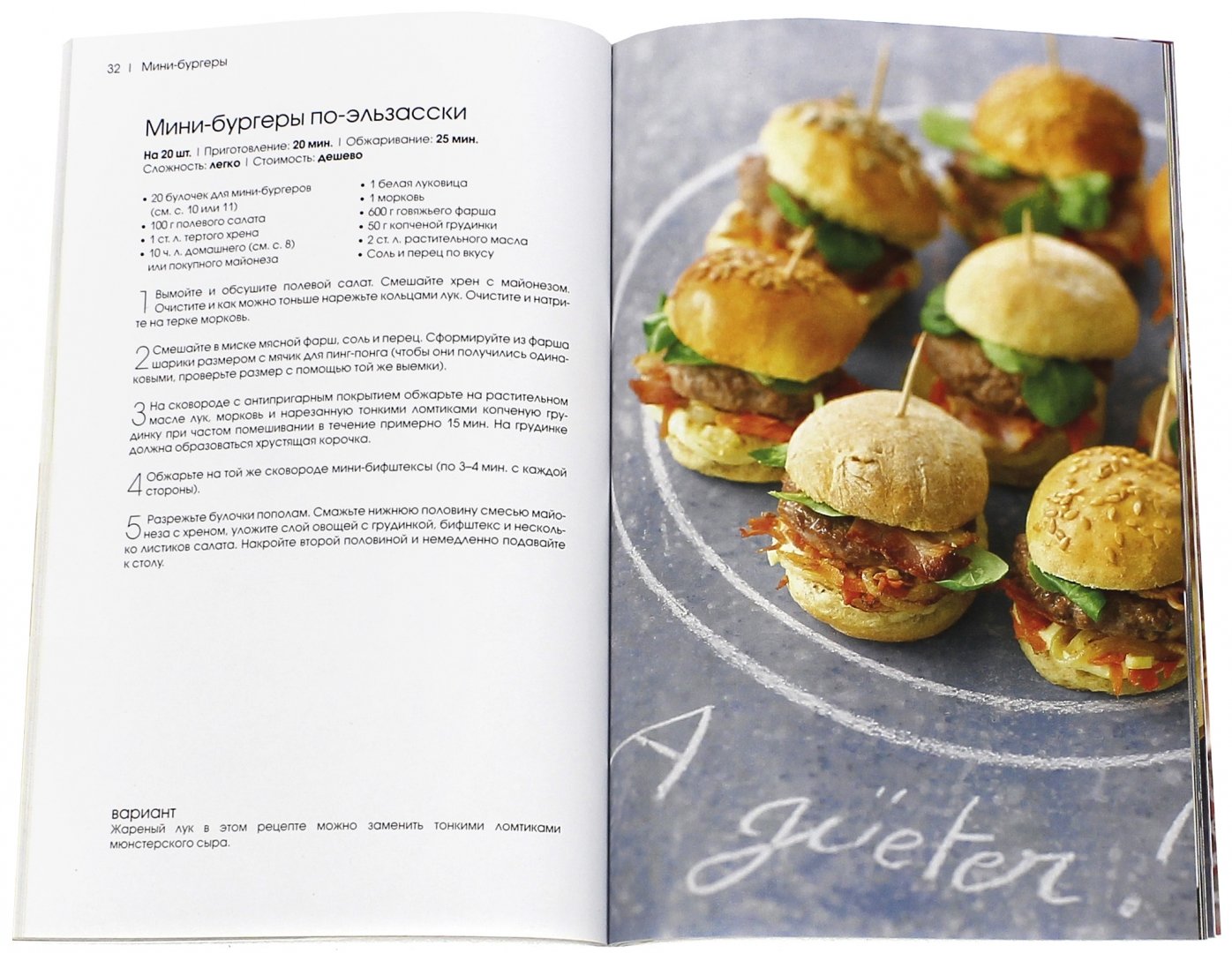 ОписаниеБулочки для мини-бургеров, домашний кетчуп и соус айоли, мини-бургеры по-американски и по-эльзасски, мини-бургеры "Циклоп", "Марьячи" и "Болливуд"... По нашим рецептам вы без труда приготовите удивительно аппетитные бургеры, маленькие и изящные, по вкусу ничем не уступающие самым сложным деликатесным блюдам.Прилагающиеся к книге рецептов формочки-выемки и бамбуковые шпажки предназначены для приготовления пищевых продуктов. Перед первым употреблением формочки-выемки необходимо тщательно вымыть. Формочки и шпажки не являются игрушками и не предназначены для использования детьми без присмотра взрослых.В наборе: 2 формочки-выемки, 20 бамбуковых шпажек, книга с рецептами.Булочки для мини-бургеров, домашний кетчуп и соус айоли, мини-бургеры по-американски и по-эльзасски, мини-бургеры "Циклоп", "Марьячи" и "Болливуд"... По нашим рецептам вы без труда приготовите удивительно аппетитные бургеры, маленькие и изящные, по вкусу ничем не уступающие самым сложным деликатесным блюдам.Прилагающиеся к книге рецептов формочки-выемки и бамбуковые шпажки предназначены для приготовления пищевых продуктов. Перед первым употреблением формочки-выемки необходимо тщательно вымыть. Формочки и шпажки не являются игрушками и не предназначены для использования детьми без присмотра взрослых.В наборе: 2 формочки-выемки, 20 бамбуковых шпажек, книга с рецептами.