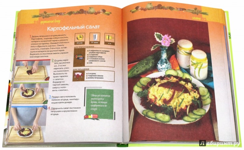 ОписаниеКрасиво оформленные блюда способны поднять настроение и превратить в праздник любой день. Если вы хотите порадовать близких и поразить гостей своим кулинарным искусством, вам поможет эта книга. В ней описаны основные приемы изготовления съедобных украшений для закусок, салатов, супов, вторых блюд, выпечки, десертов и напитков. Они сопровождаются пошаговыми инструкциями и красочными иллюстрациями, которые облегчат процесс оформления блюд.Красиво оформленные блюда способны поднять настроение и превратить в праздник любой день. Если вы хотите порадовать близких и поразить гостей своим кулинарным искусством, вам поможет эта книга. В ней описаны основные приемы изготовления съедобных украшений для закусок, салатов, супов, вторых блюд, выпечки, десертов и напитков. Они сопровождаются пошаговыми инструкциями и красочными иллюстрациями, которые облегчат процесс оформления блюд.