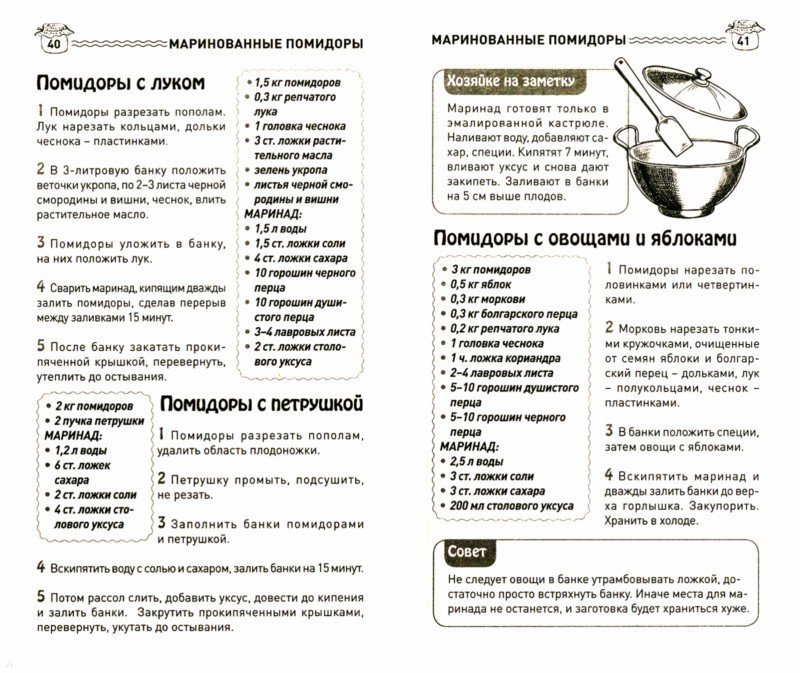 ОписаниеСоленый и маринованный помидорчик - краса стола и гордость умелой хозяйки.Вкусно приготовить помидоры для зимнего припаса не так уж просто. То соль не та, то уксуса много, то забродили, то плесень, то полопались.В этой книге собраны как наимоднейшие рецепты помидоров с разными добавками (с виноградом, сливами, крыжовником, яблоками и другими фруктами), так и приготовленные "как у бабушки", то есть исконно русские, проверенные временем. Есть из чего выбрать.Книга будет полезна как начинающим, так и опытным хозяйкам, поскольку в ней много советов, которые станут предостережением от ошибок. Есть таблицы по разведению уксуса и переводу граммов в "ложки", что, без сомнения, удобнее и практичнее.Помимо монорецептов (одни помидоры) в книге есть заготовки, где помидоры находятся в компании с другими овощами, но "солируют", а также много салатов с томатами. И несомненная ценность - рецепты по приготовлению томатного сока, банки с которым разлетаются из погреба моментально.Составитель: Шабанова В. В.СвернутьСоленый и маринованный помидорчик - краса стола и гордость умелой хозяйки.Вкусно приготовить помидоры для зимнего припаса не так уж просто. То соль не та, то уксуса много, то забродили, то плесень, то полопались.В этой книге собраны как наимоднейшие рецепты помидоров с разными добавками (с виноградом, сливами, крыжовником, яблоками и другими фруктами), так и приготовленные "как у бабушки", то есть исконно русские, проверенные временем. Есть из чего выбрать.Книга будет полезна как начинающим, так и опытным хозяйкам, поскольку в ней много советов, которые станут предостережением от ошибок. Есть таблицы по разведению уксуса и переводу граммов в "ложки", что, без сомнения, удобнее и практичнее.Помимо монорецептов (одни помидоры) в книге есть заготовки, где помидоры находятся в компании с другими овощами, но "солируют", а также много салатов с томатами. И несомненная ценность - рецепты по приготовлению томатного сока, банки с которым разлетаются из погреба моментально.Составитель: Шабанова В. В.СвернутьСвернуть
