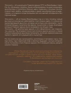 ОписаниеВы держите в руках первую иллюстрированную книгу о Главном здании МГУ. Автор проекта Роман Янковский провел масштабную кампанию, в ходе которой ему удалось собрать огромное количество архивных материалов, схем и рассказов жителей города. Именно в этом здании появились первые стеновые панели, кондиционеры и скоростные лифты. Чудеса инженерной мысли воплотились в реальность тогда, когда у большинства москвичей даже не было горячей воды! В книге описана впечатляющая история строительства высотки, ее архитектурные особенности и устройство, собрано множество фотографий фасада и интерьеров. Также авторы не забыли упомянуть и отдельных выдающихся личностей, благодаря самоотверженному труду которых главное здание МГУ стало одним из символов нашей столицы.2-е издание, исправленное.Вы держите в руках первую иллюстрированную книгу о Главном здании МГУ. Автор проекта Роман Янковский провел масштабную кампанию, в ходе которой ему удалось собрать огромное количество архивных материалов, схем и рассказов жителей города. Именно в этом здании появились первые стеновые панели, кондиционеры и скоростные лифты. Чудеса инженерной мысли воплотились в реальность тогда, когда у большинства москвичей даже не было горячей воды! В книге описана впечатляющая история строительства высотки, ее архитектурные особенности и устройство, собрано множество фотографий фасада и интерьеров. Также авторы не забыли упомянуть и отдельных выдающихся личностей, благодаря самоотверженному труду которых главное здание МГУ стало одним из символов нашей столицы.2-е издание, исправленное.