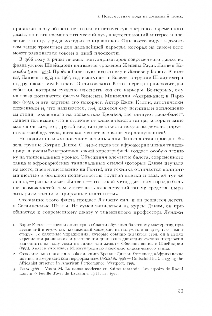 ОписаниеКак в Швейцарии появился современный танец, как он развивался и достиг признания? Исследовательницы Анн Давье и Анни Сюке побеседовали с представителями нескольких поколений швейцарских танцоров, хореографов и зрителей, проследив все этапы становления современного танца - от школ классического балета до перформансов последних десятилетий. В этой книге мы попадаем в Кьяссо, Цюрих, Женеву, Невшатель, Базель и другие швейцарские города, где знакомимся с разными направлениями современной танцевальной культуры - от классического танца во французской Швейцарии до "аусдрукстанца" в немецкой. Современный танец кардинально изменил консервативную швейцарскую культуру прошлого, и, судя по всему, процесс художественной модернизации продолжает набирать обороты. Анн Давье - искусствовед, директор Ассоциации современного танца (ADC), главный редактор журнала ADC. Анни Сюке - историк танца, независимый исследователь, в прошлом - преподаватель истории и эстетики танца в Школе изящных искусств Женевы и университете Париж VIII.СвернутьКак в Швейцарии появился современный танец, как он развивался и достиг признания? Исследовательницы Анн Давье и Анни Сюке побеседовали с представителями нескольких поколений швейцарских танцоров, хореографов и зрителей, проследив все этапы становления современного танца - от школ классического балета до перформансов последних десятилетий. В этой книге мы попадаем в Кьяссо, Цюрих, Женеву, Невшатель, Базель и другие швейцарские города, где знакомимся с разными направлениями современной танцевальной культуры - от классического танца во французской Швейцарии до "аусдрукстанца" в немецкой. Современный танец кардинально изменил консервативную швейцарскую культуру прошлого, и, судя по всему, процесс художественной модернизации продолжает набирать обороты. Анн Давье - искусствовед, директор Ассоциации современного танца (ADC), главный редактор журнала ADC. Анни Сюке - историк танца, независимый исследователь, в прошлом - преподаватель истории и эстетики танца в Школе изящных искусств Женевы и университете Париж VIII.СвернутьСвернуть