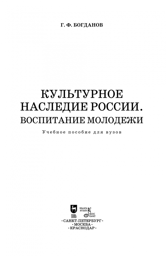 Геннадий Богданов: Культурное наследие России. Воспитание молодежи. Учебное пособие для вузов