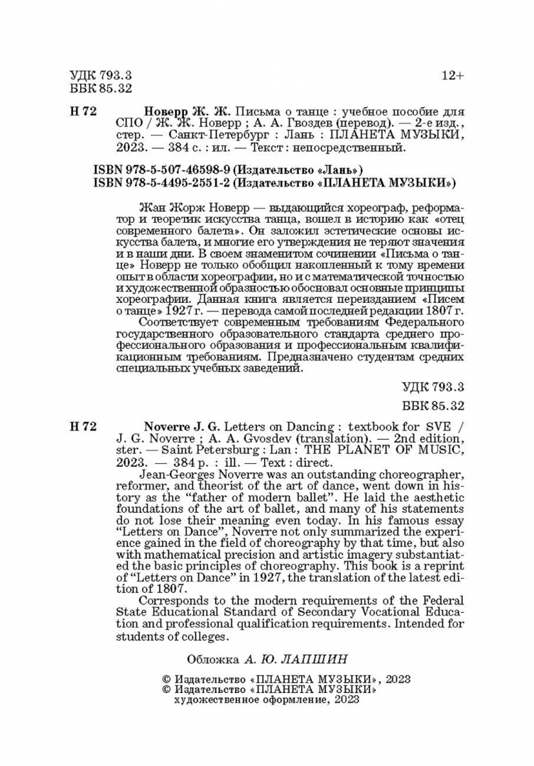 Жан Новерр: Письма о танце. Учебное пособие для СПО