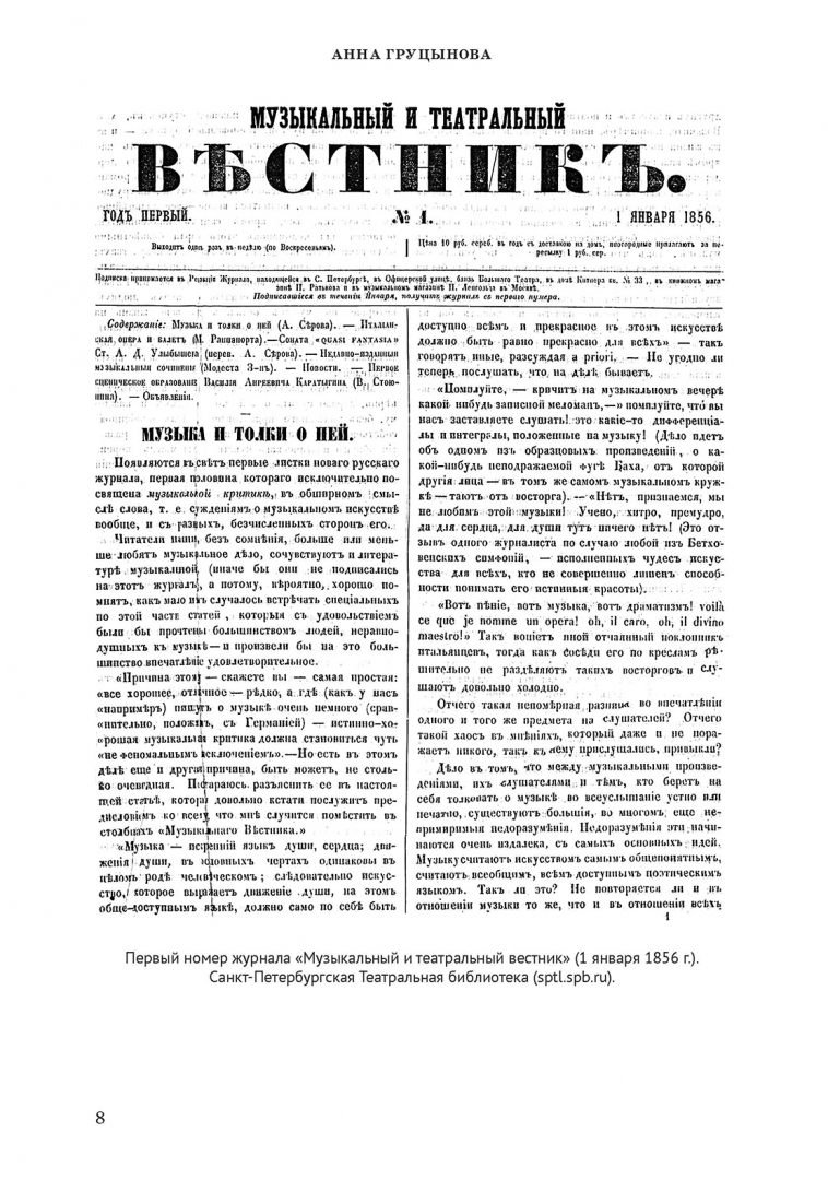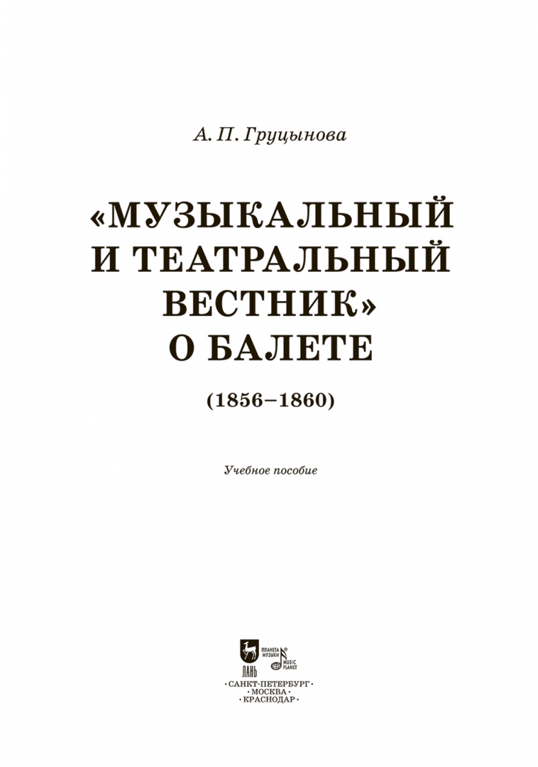 Анна Груцынова: Музыкальный и театральный вестник о балете (1856 1860). Учебное пособие