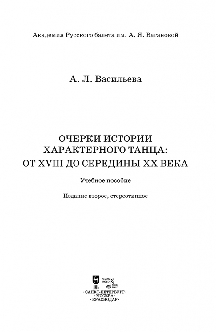 Анастасия Васильева: Очерки истории характерного танца. От XVIII до середины XX века. Учебное пособие