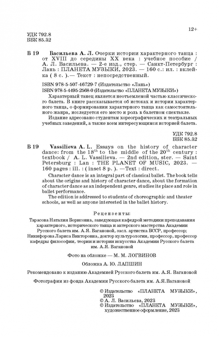 --Анастасия Васильева: Очерки истории характерного танца. От XVIII до середины XX века. Учебное пособиеХобби и развлечения. Организация досуга. ПесенникиИскусство. Культура. Музыка. Театр. КиноТуризм. Путешествие. Страноведение(Краеведение)Путеводители.Атласы дорог.КартыПутевые очерки. Рассказы путешественников и натуралистовОхота. Рыбалка. СобирательствоРастениеводствоКоллекционированиеТуризм. Путеводители. ТранспортРазвлечения. ПраздникиРемонт. Строительство. ИнтерьерДомашние ремесла. РукоделиеУход за животнымиФитнес. Спорт. СамооборонаКулинарияКультура. ИскусствоДомоводство