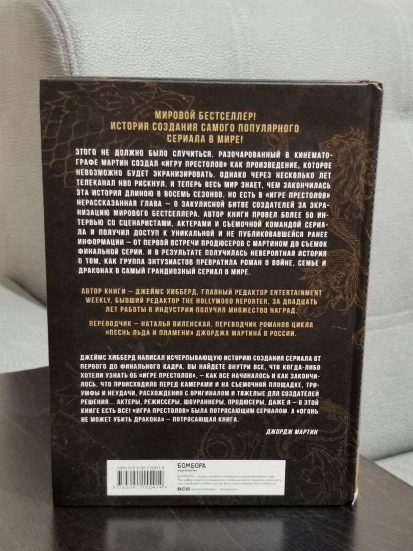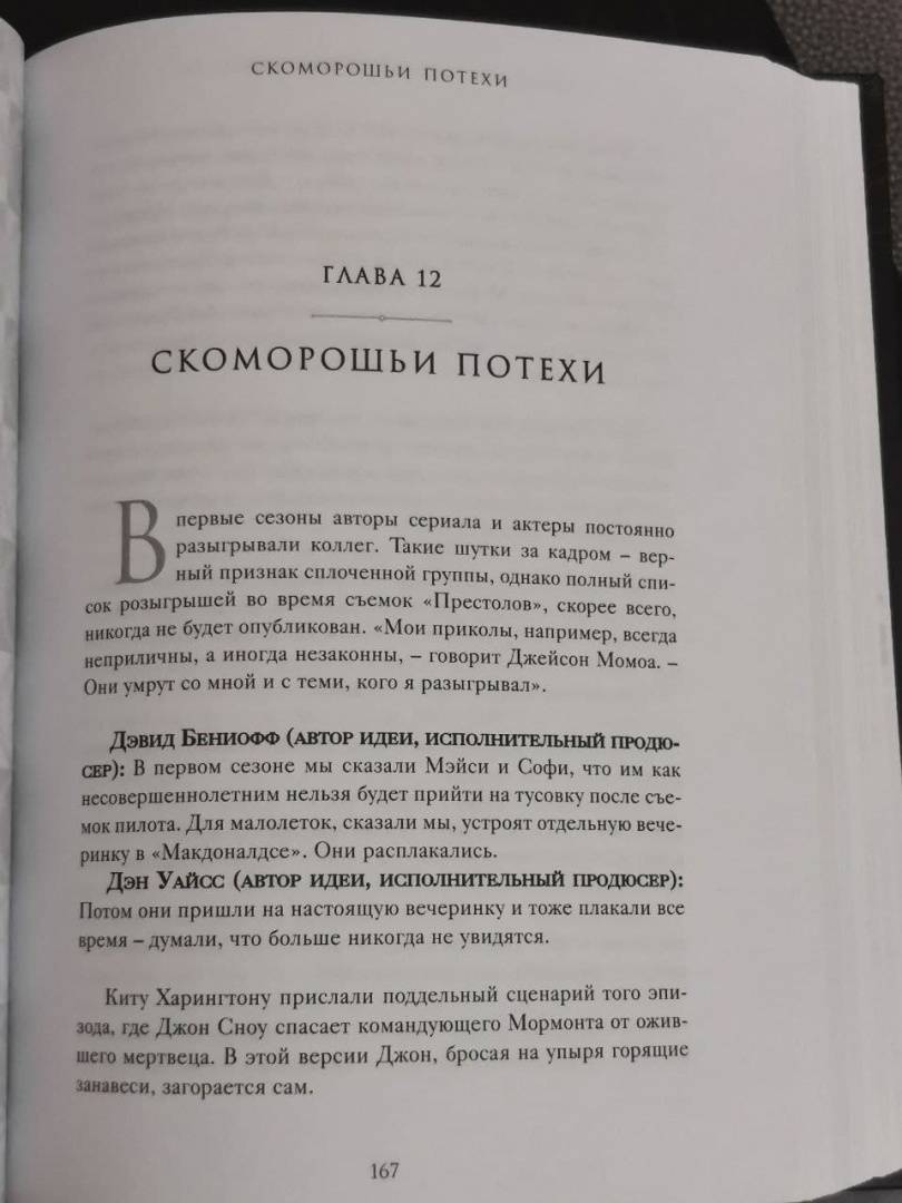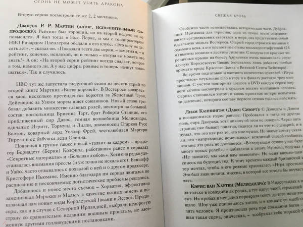 ОписаниеМировой бестселлер! Первая официальная история создания самого популярного сериала в истории! Вряд ли кому-то нужно объяснять, что такое "Игра престолов" и кто его главные герои. Юная Дейнерис, желающая вернуться домой и занять законное место на престоле; храбрый Джон Сноу, ищущий свое место в мире; хитрый Тирион Ланнистер, не желающий мириться со своей участью; и дети Неда Старка, которым пришлось повзрослеть слишком рано — всех их свела воедино Судьба во исполнение древнего пророчества. Каждый из героев прошел длинный путь — они теряли близких, переживали предательства друзей и соратников, совершали ошибки и даже умирали. Обладая невероятной силой воли и желанием восстановить справедливость, так или иначе герои преодолели все испытания Судьбы. Но вы ведь и сами это знаете?Но вы скорее всего не знаете, каким сложным был путь сериала к экрану. Разочарованный в кинематографе Мартин создал "Игру престолов" как произведение, которое невозможно будет экранизировать. Однако через несколько лет телеканал HBO рискнул, и теперь весь мир знает, чем закончилась эта история длинною в восемь сезонов. Эта книга основана на 50 откровенных интервью со всеми участниками съемочного процесса — от продюсеров до актеров. Каждый из них расскажет о том, каково было сниматься в сериале, чем пришлось пожертвовать и какой съемочный день он запомнит на всю жизнь.СвернутьМировой бестселлер! Первая официальная история создания самого популярного сериала в истории! Вряд ли кому-то нужно объяснять, что такое "Игра престолов" и кто его главные герои. Юная Дейнерис, желающая вернуться домой и занять законное место на престоле; храбрый Джон Сноу, ищущий свое место в мире; хитрый Тирион Ланнистер, не желающий мириться со своей участью; и дети Неда Старка, которым пришлось повзрослеть слишком рано — всех их свела воедино Судьба во исполнение древнего пророчества. Каждый из героев прошел длинный путь — они теряли близких, переживали предательства друзей и соратников, совершали ошибки и даже умирали. Обладая невероятной силой воли и желанием восстановить справедливость, так или иначе герои преодолели все испытания Судьбы. Но вы ведь и сами это знаете?Но вы скорее всего не знаете, каким сложным был путь сериала к экрану. Разочарованный в кинематографе Мартин создал "Игру престолов" как произведение, которое невозможно будет экранизировать. Однако через несколько лет телеканал HBO рискнул, и теперь весь мир знает, чем закончилась эта история длинною в восемь сезонов. Эта книга основана на 50 откровенных интервью со всеми участниками съемочного процесса — от продюсеров до актеров. Каждый из них расскажет о том, каково было сниматься в сериале, чем пришлось пожертвовать и какой съемочный день он запомнит на всю жизнь.СвернутьСвернуть