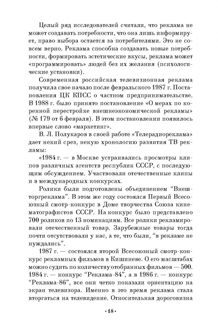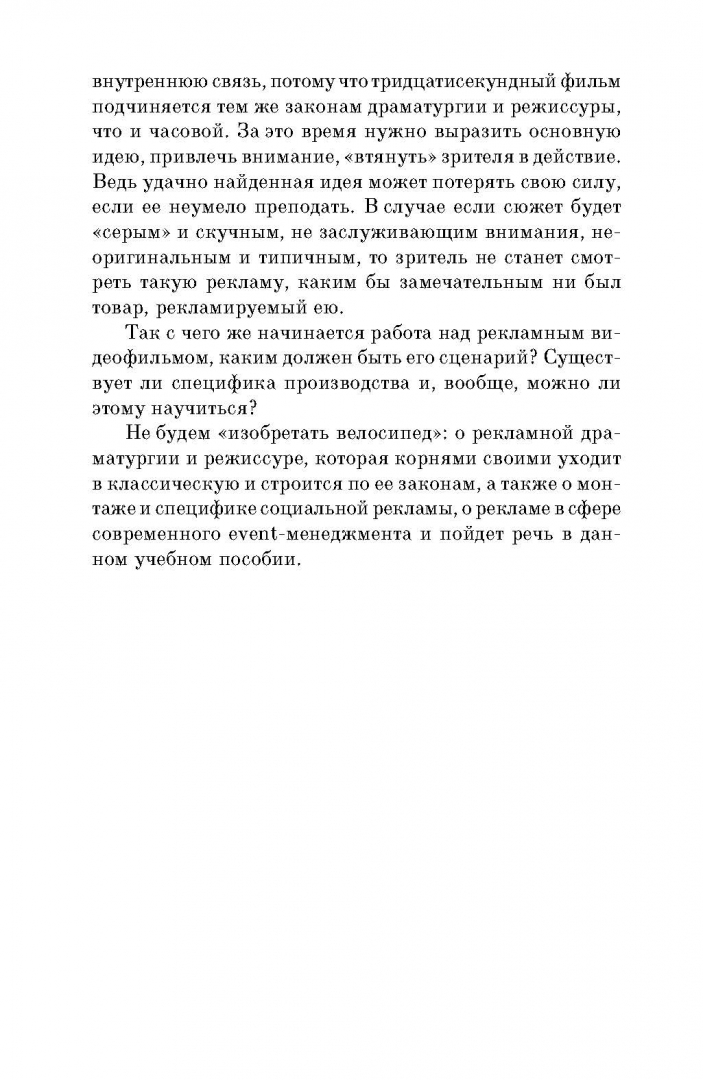 ОписаниеНастоящая книга создана на основе многолетнего преподавательского и творческого опыта автора, анализа многих последних публикаций в области творческих изысканий рекламного видео и PR. В основе - учение о рекламной драматургии и режиссуре, которое своими корнями уходит в классическую и строится по её законам. Также в учебном пособии идет речь о монтаже и специфике социальной видеорекламы, о рекламе в сфере современного event-менеджмента. В приложении представлены практические работы и сценарии рекламных видеосюжетов, а также авторские экспликации PR проектов, разработанные студентами в творческой лаборатории под руководством автора.Учебное пособие предназначается для студентов факультетов рекламы и PR и практиков рекламного дела.4-е издание, стереотипное.Настоящая книга создана на основе многолетнего преподавательского и творческого опыта автора, анализа многих последних публикаций в области творческих изысканий рекламного видео и PR. В основе - учение о рекламной драматургии и режиссуре, которое своими корнями уходит в классическую и строится по её законам. Также в учебном пособии идет речь о монтаже и специфике социальной видеорекламы, о рекламе в сфере современного event-менеджмента. В приложении представлены практические работы и сценарии рекламных видеосюжетов, а также авторские экспликации PR проектов, разработанные студентами в творческой лаборатории под руководством автора.Учебное пособие предназначается для студентов факультетов рекламы и PR и практиков рекламного дела.4-е издание, стереотипное.