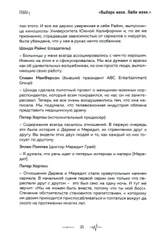 ОписаниеМировой бестселлер! История создания главной медицинской драмы на ТВ, благодаря которой вы полюбите сериал еще больше! Когда в далеком 2005 году на экранах появилась история о девушке-хирурге, никто и представить не мог, какой успех ждет "Анатомию страсти" в будущем. Всего год спустя сериал стал одним из самых успешных на телевидении и завоевал множество наград, включая "Золотой глобус" и "Эмми", а исполнители главных ролей стали популярны во всем мире. В чем же секрет? Как "Анатомии страсти" и его создателям удается удерживать любовь и внимание зрителей уже более 17 лет? Ответ прост - это история не просто о врачах, это история об обычных людях, которых мы каждый день видим вокруг. Они влюбляются и теряют любимых, устают на работе и совершают ошибки, радуются и грустят - они живут! И поэтому каждый может найти в этом сериале себя, своих друзей или близких - а, возможно, и ответы на животрепещущие вопросы. За 18 лет существования сериал "Анатомия страсти" рассказал своим зрителям очень много историй - о любви и ненависти, поиске себя и своего пути, отстаивании границ и ссорах с близкими, предательстве и даже смерти. Нерассказанной осталась лишь одна - о том, какой путь прошел сериал и его создательница, чтобы оказаться на телевидение. Эта книга - ваш пропуск за кулисы главной медицинской драмы эпохи. С его помощью вы окажетесь в самом центре событий, в окружении Шонды Раймс, главных актеров и членов съемочной группы сериала. Каждый из них поделится с вами своим рассказом - и вместе они сложатся в самую полную историю создания "Анатомии страсти", которую вы сможете узнать одним из первых. - Как Шонда Раймс защищала своих героев? - Кто должен был играть Дерека Шепарда? - Почему Т.Р. Найт оставил роль доктор О'Мэлли? - Как Исайа Вашингтон опозорил своих коллег? - Кого из актеров уволили без объяснения причин? Узнайте всё о том, как создается любимый сериал! "Твоя жизнь - это то, что происходит сегодня. Сейчас. Вот она. Здесь. Не успеешь моргнуть - она пройдет. Ты сказал это? "Я люблю тебя". "Я не хочу жить без тебя". "Ты изменила мою жизнь". Ты сказал это? Строй планы, выбирай цели, иди к ним, но время от времени смотри по сторонам. Прими жизнь всем существом, потому что она здесь и сейчас. Завтра ее может не быть". - Мередит Грей, 5-й сезон, 24-я серияСвернутьМировой бестселлер! История создания главной медицинской драмы на ТВ, благодаря которой вы полюбите сериал еще больше! Когда в далеком 2005 году на экранах появилась история о девушке-хирурге, никто и представить не мог, какой успех ждет "Анатомию страсти" в будущем. Всего год спустя сериал стал одним из самых успешных на телевидении и завоевал множество наград, включая "Золотой глобус" и "Эмми", а исполнители главных ролей стали популярны во всем мире. В чем же секрет? Как "Анатомии страсти" и его создателям удается удерживать любовь и внимание зрителей уже более 17 лет? Ответ прост - это история не просто о врачах, это история об обычных людях, которых мы каждый день видим вокруг. Они влюбляются и теряют любимых, устают на работе и совершают ошибки, радуются и грустят - они живут! И поэтому каждый может найти в этом сериале себя, своих друзей или близких - а, возможно, и ответы на животрепещущие вопросы. За 18 лет существования сериал "Анатомия страсти" рассказал своим зрителям очень много историй - о любви и ненависти, пои