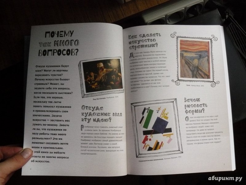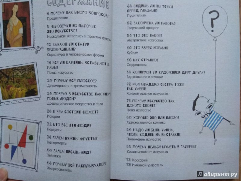 ОписаниеВ этой книге ты найдешь ответы на разнообразные вопросы об изобразительном искусстве и одновременно познакомишься со множеством тем - от наскальной живописи до кубизма и от Ренессанса до современного искусства.В этой книге ты найдешь ответы на разнообразные вопросы об изобразительном искусстве и одновременно познакомишься со множеством тем - от наскальной живописи до кубизма и от Ренессанса до современного искусства.
